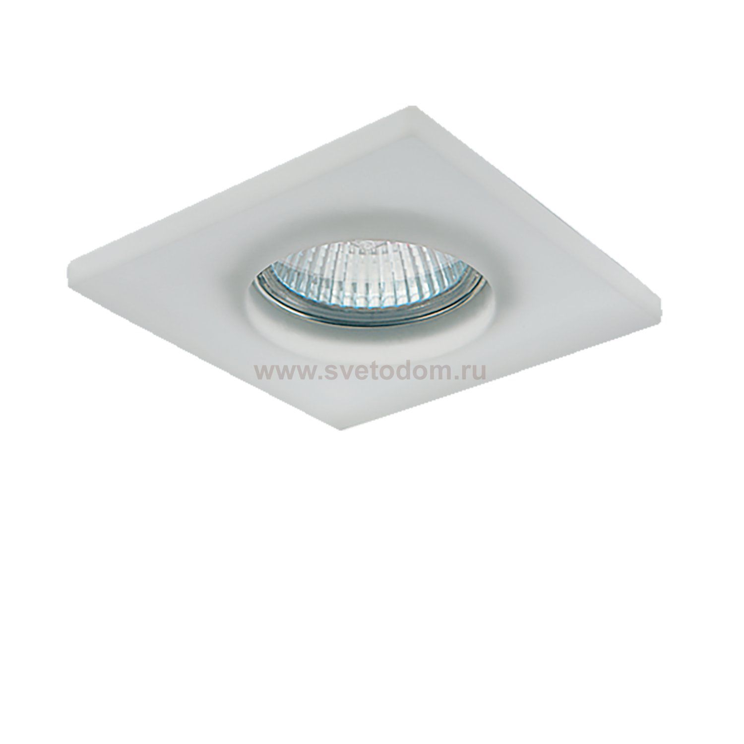 Врезное отверстие: d76 h60; Внешние габариты: 90x90 H10; Материал - основание/плафон: металл / стекло (мат.); Цвет-основание/плафон: хром/матовый; Лампа: 12В/220В MR16 Gu5.3 max 50Вт;