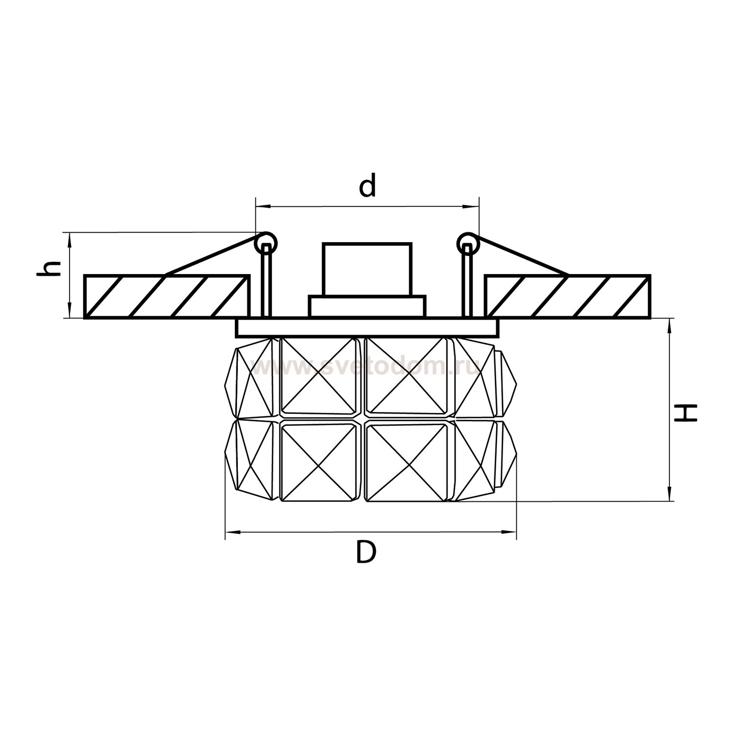 Данный размер указывает какое отверстие необходимо сделать для правильного монтажа. Зачастую светильники выбирают после ремонта и сделанных монтажных отверстий, тогда подбор осуществляется строго в размер +/- 2-5мм.