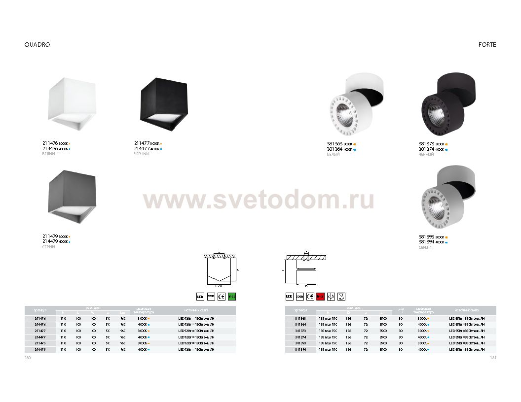 Светильник накладной заливающего света со встроенными светодиодами Артикул производителя