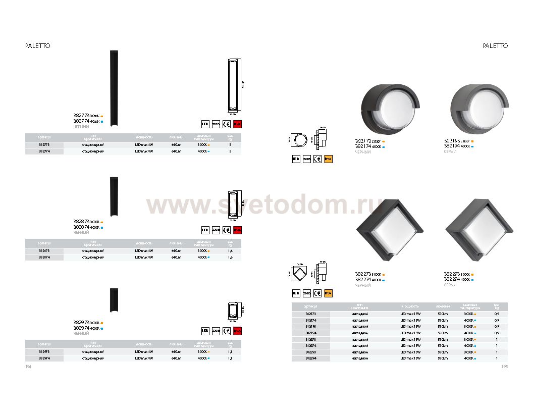 382974 Светильник парковый PALETTO 8W LED 640LM ЧЕРНЫЙ 4000K