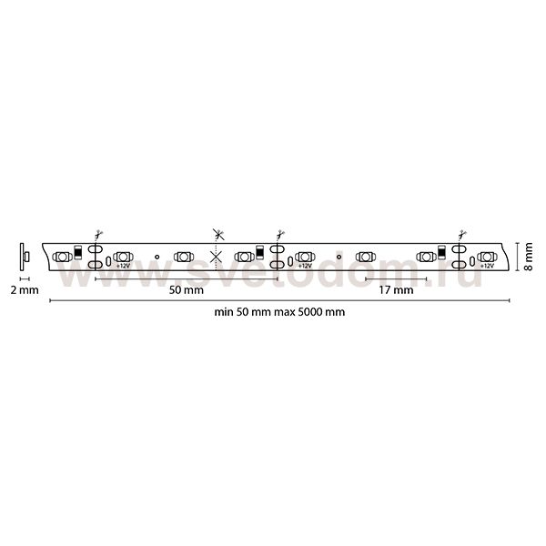 Светодиодная лента, 12V, отрез кратно 50 мм, цена за 1 м, мощность на 1м: 4,8W/m; цвет: теплый белый PCB; Световой поток: 210лм/м; цветовая температура: 2700-3000К Штрих-код