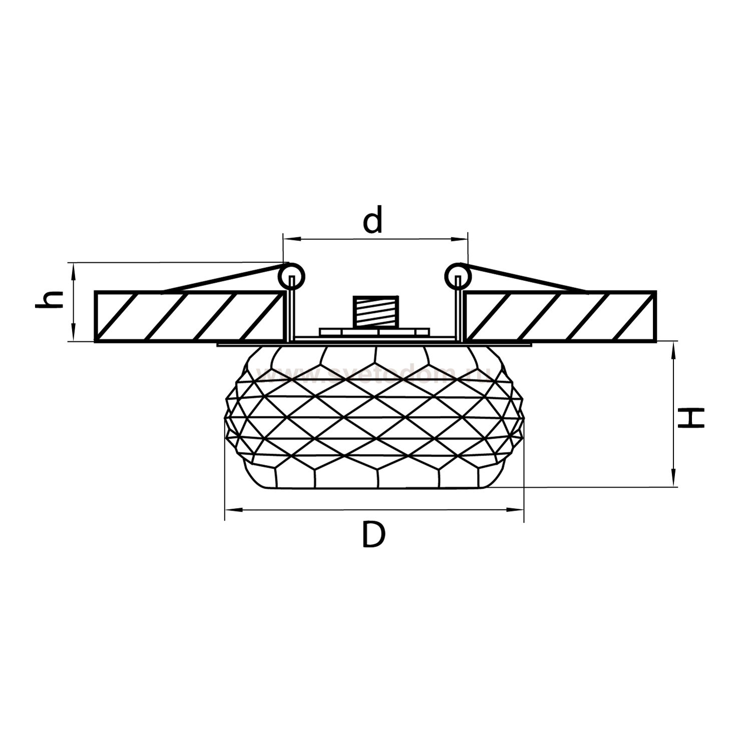Данный размер указывает какое отверстие необходимо сделать для правильного монтажа. Зачастую светильники выбирают после ремонта и сделанных монтажных отверстий, тогда подбор осуществляется строго в размер +/- 2-5мм.