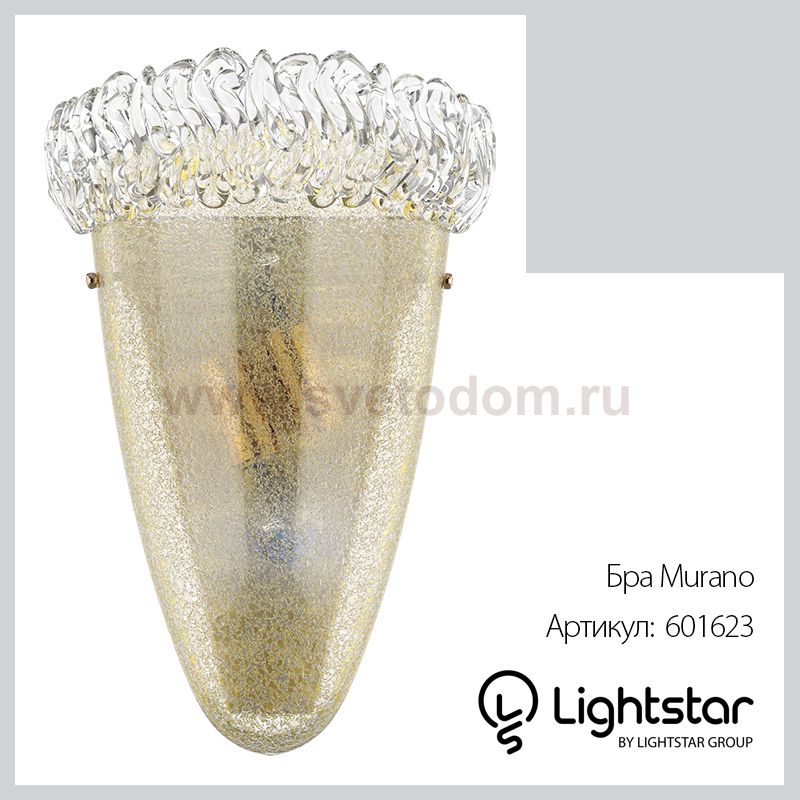 Бра Murano – яркий представитель классического стиля.Светильник выполнен из стекла и украшен словно растопленным сахаром, что придаст свету оригинальные переливы и теплый оттенок.