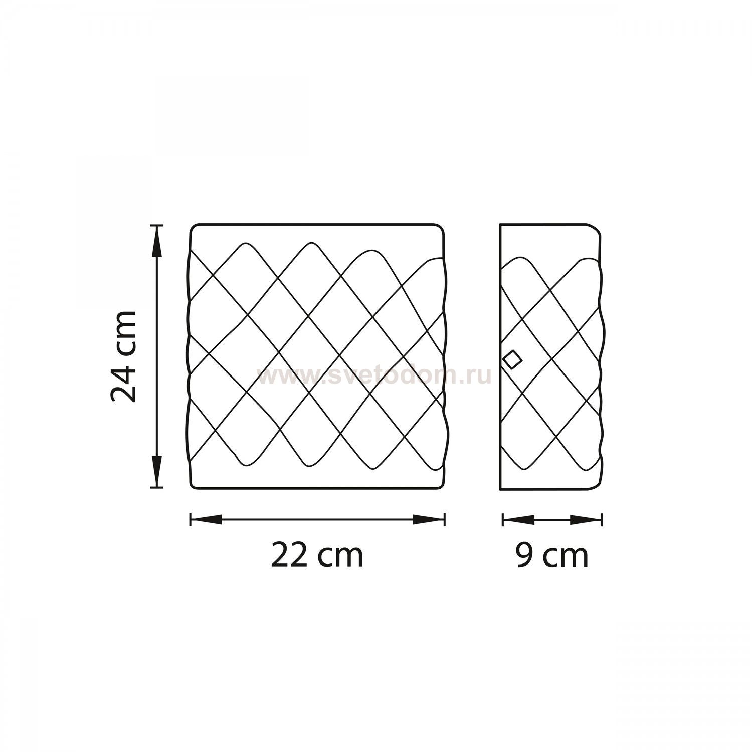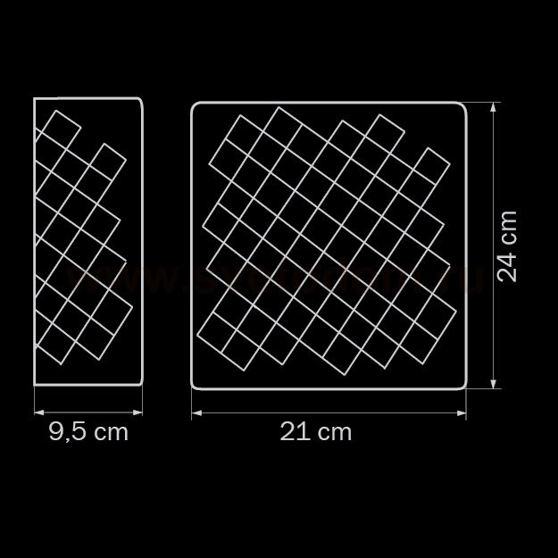 Высота min-max (см): 24;Ширина (см): 22; Глубина (см): 9; Вес (кг): 2,1; Кол-во ламп: 2хE14; Мощность max (W): 40; Цвет основания/цвет стекла или абажура: Ambra;