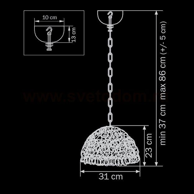 Высота min-max (см): 37-86; Ширина (см): 33; Вес (кг): 3,8; Кол-во ламп: 1хE27; Мощность max (W): 40; Цвет основания/цвет стекла или абажура: Crystal/Crome;