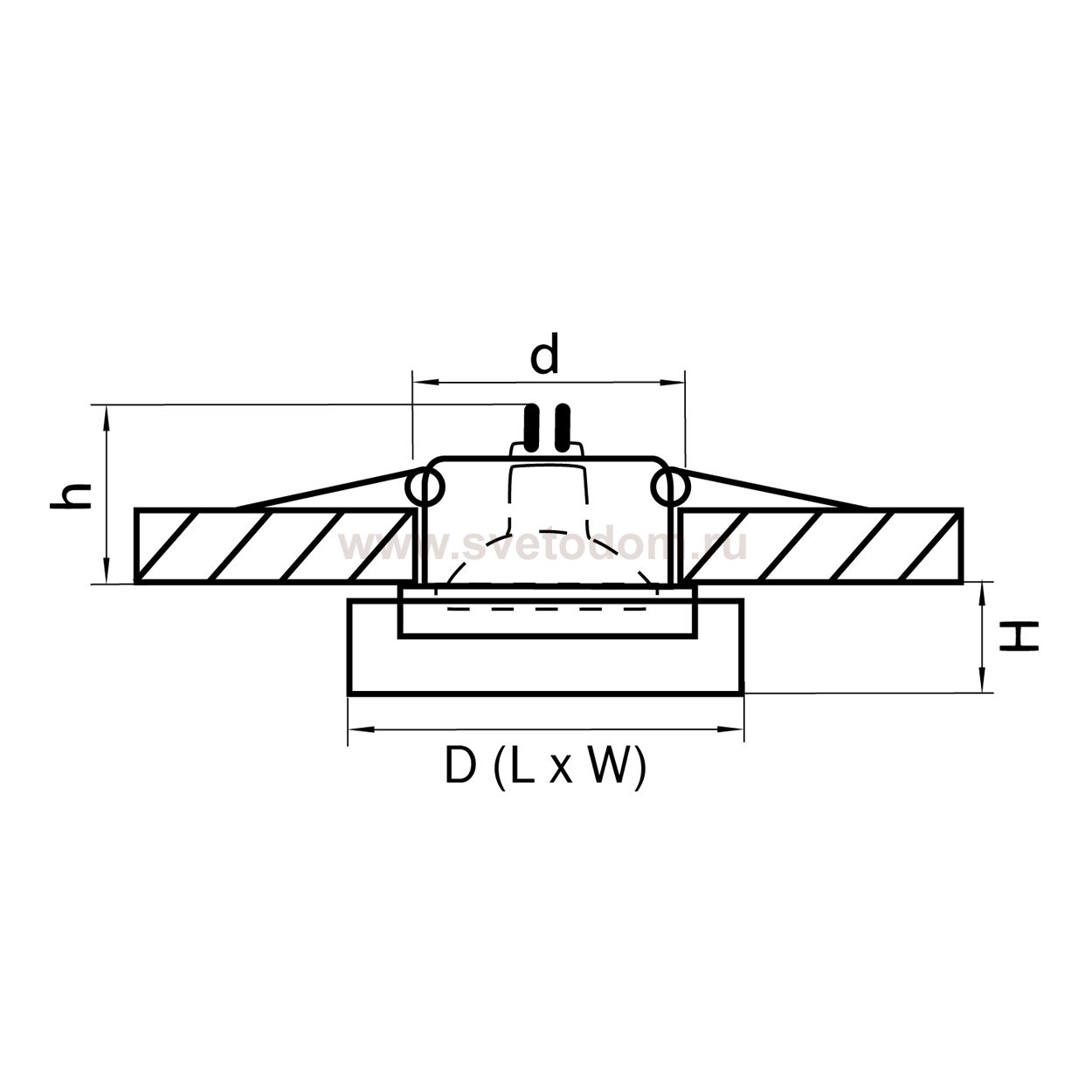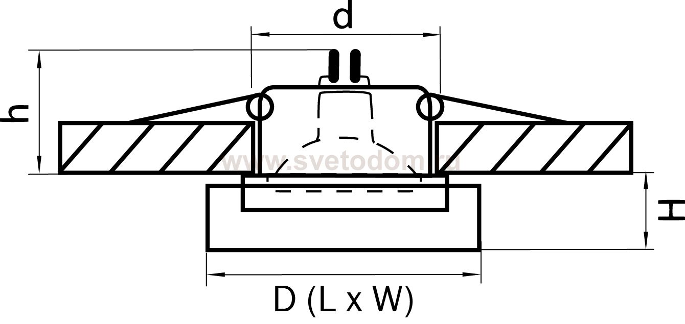 Данный размер указывает какое отверстие необходимо сделать для правильного монтажа. Зачастую светильники выбирают после ремонта и сделанных монтажных отверстий, тогда подбор осуществляется строго в размер +/- 2-5мм.
