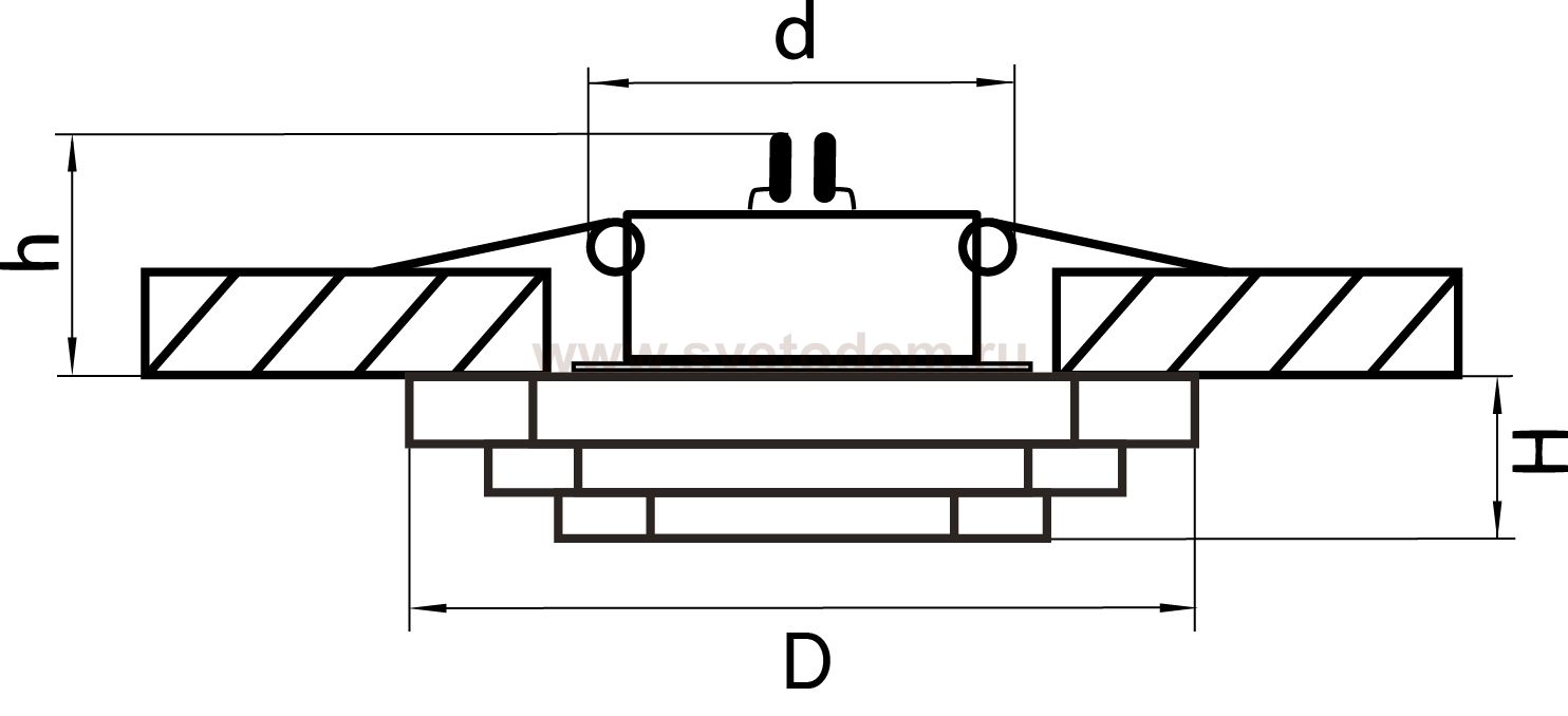 Данный размер указывает какое отверстие необходимо сделать для правильного монтажа. Зачастую светильники выбирают после ремонта и сделанных монтажных отверстий, тогда подбор осуществляется строго в размер +/- 2-5мм.