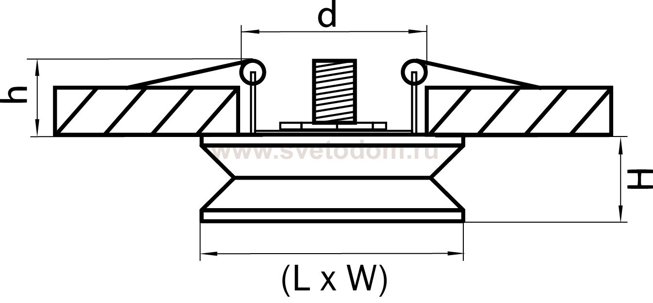 Данный размер указывает какое отверстие необходимо сделать для правильного монтажа. Зачастую светильники выбирают после ремонта и сделанных монтажных отверстий, тогда подбор осуществляется строго в размер +/- 2-5мм.