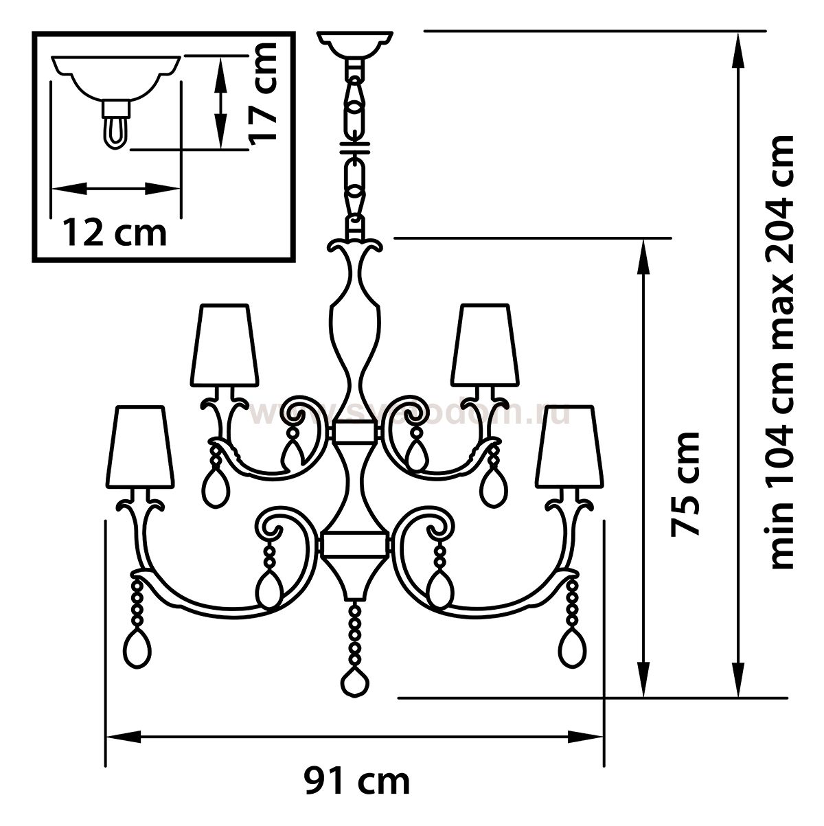 Максимальная потребляемая мощность лампы, которую можно использовать в люстре.