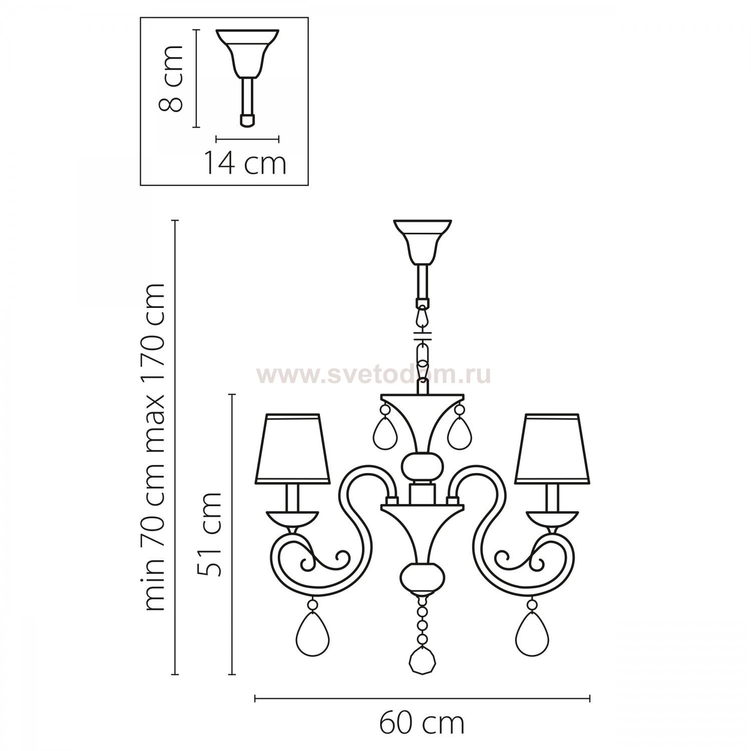 Характеризует подвесную систему светильника. Данную длину возможно изменять: дополнять или сокращать в пределах указанных данных.