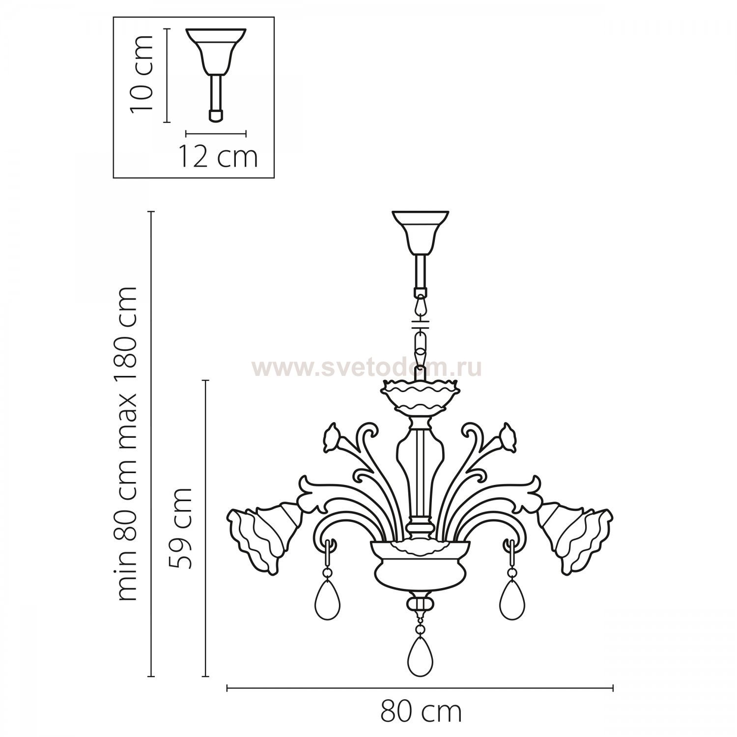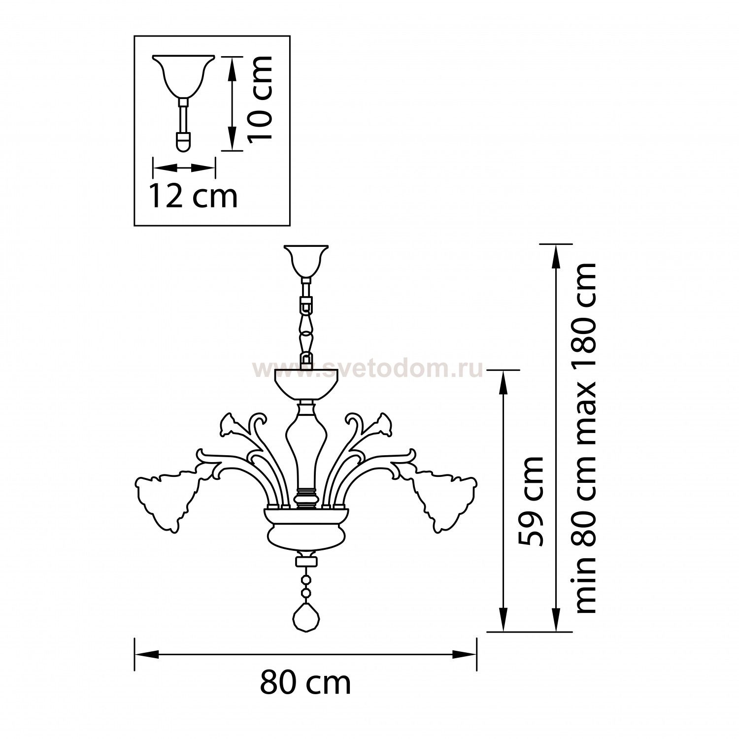 <Высота min-max (см): 80-180; Ширина (см): 80; Вес (кг): 18,9; Кол-во ламп: 8хE14; Мощность max (W):60 ; Цвет основания/цвет стекла или абажура: золото;