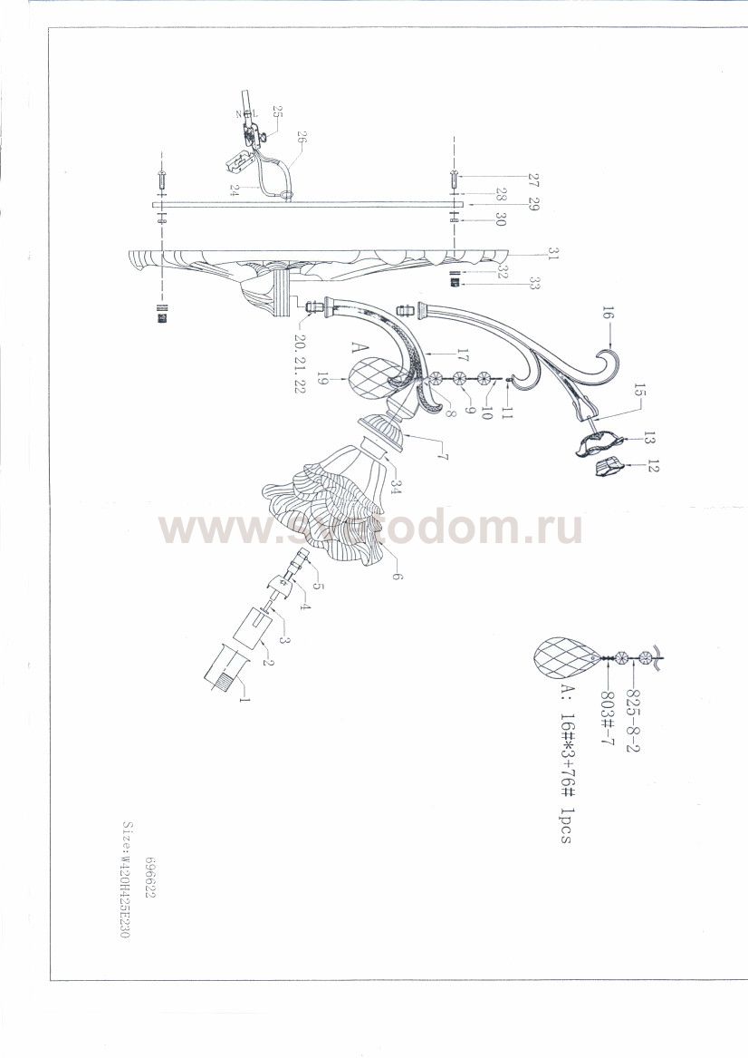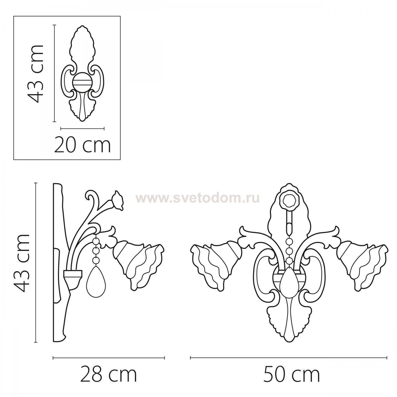 Высота min-max (см): 43; Ширина (см): 50; Глубина (см): 28; Вес (кг): 2,35; Кол-во ламп: 2хE14; Мощность max (W):60 ; Цвет основания/цвет стекла или абажура: золото;