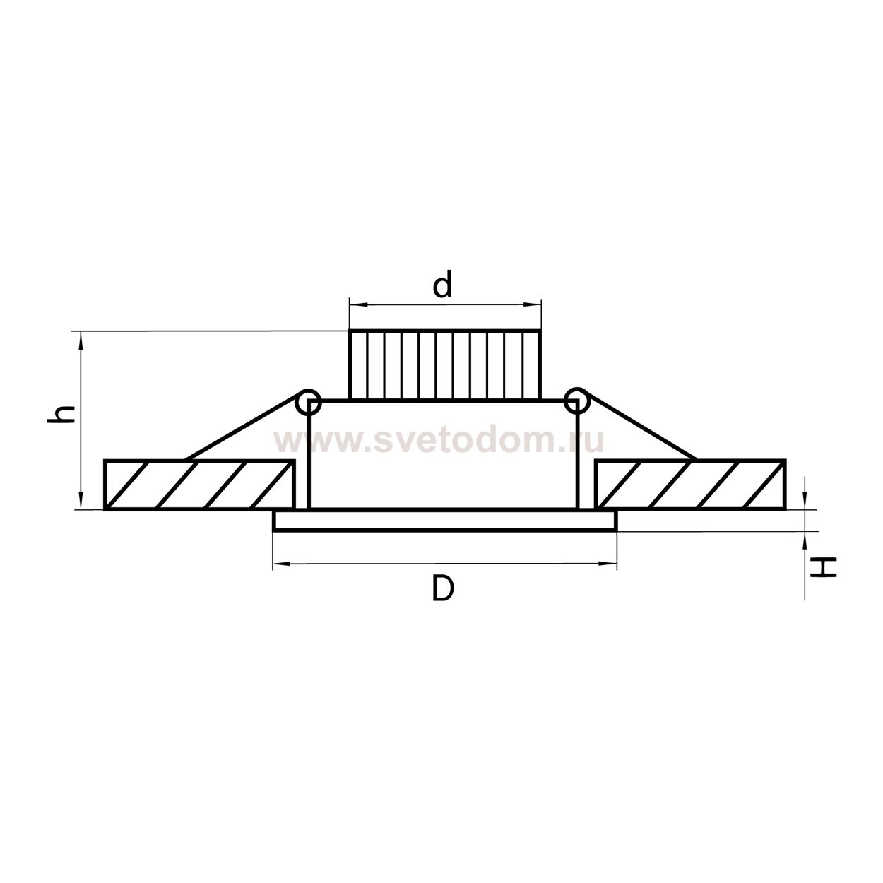 Данный размер указывает какое отверстие необходимо сделать для правильного монтажа. Зачастую светильники выбирают после ремонта и сделанных монтажных отверстий, тогда подбор осуществляется строго в размер +/- 2-5мм.