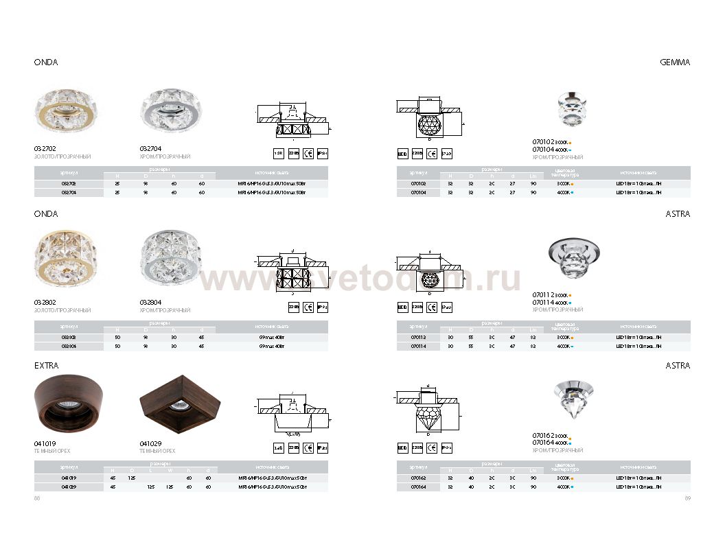 Врезное отверстие: d30 h20; Внешние габариты: D40 H32; Материал - основание/плафон: металл / Crystalline; Цвет-основание/плафон: хром/прозрачный; Лампа: LED 1W, Световой поток: 90LM; ТРАНСФОРМАТОР ВХОДИТ В КОМПЛЕКТ 3000K;