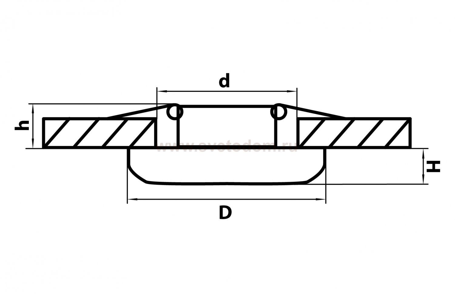 Данный размер указывает какое отверстие необходимо сделать для правильного монтажа. Зачастую светильники выбирают после ремонта и сделанных монтажных отверстий, тогда подбор осуществляется строго в размер +/- 2-5мм.