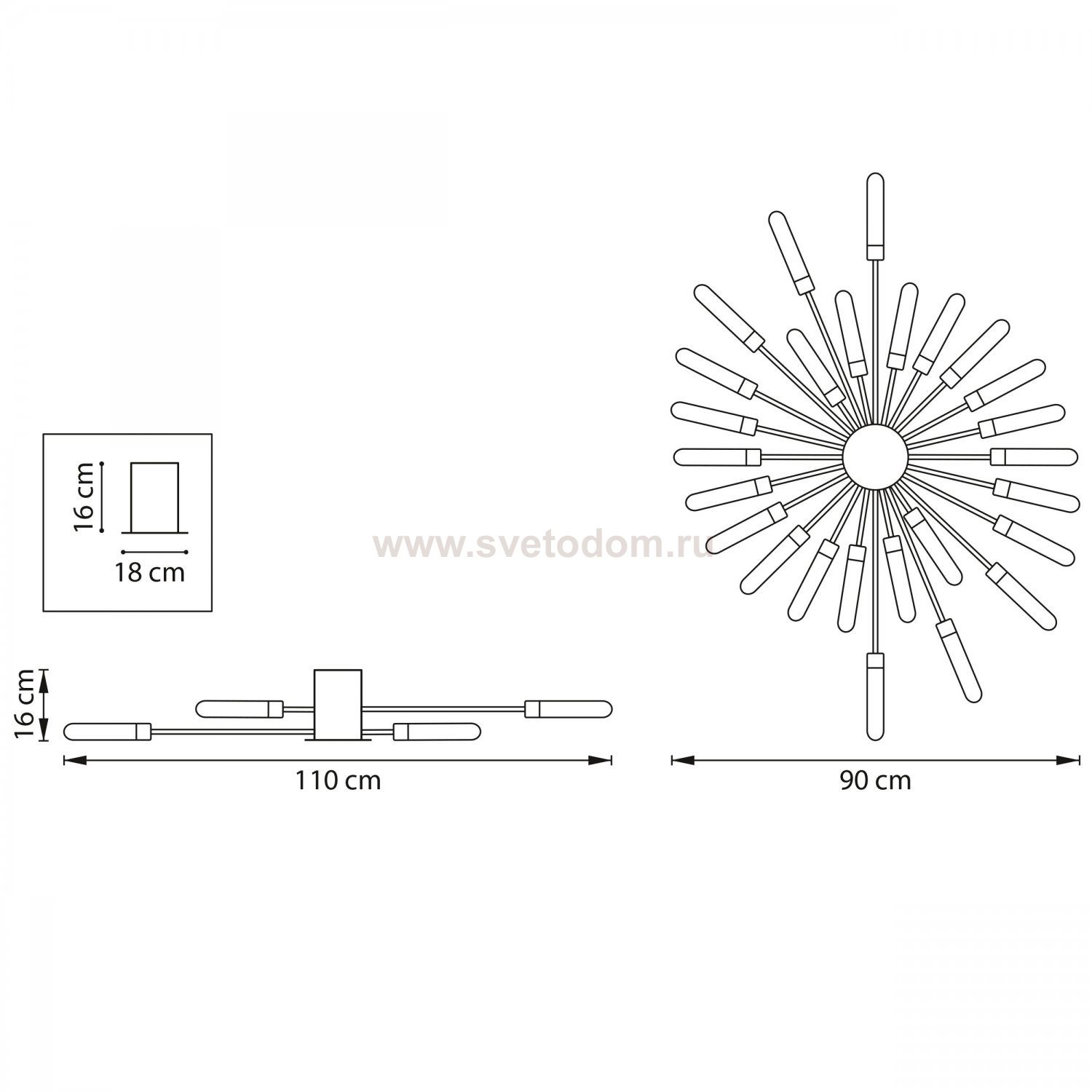 Высота min-max (см): 16; Ширина (см): 110*90; Вес (кг): 4,2; Кол-во ламп: 28хG9; Мощность max (W): 5 (led); Цвет основания/цвет стекла или абажура: черный матовый Штрих-код