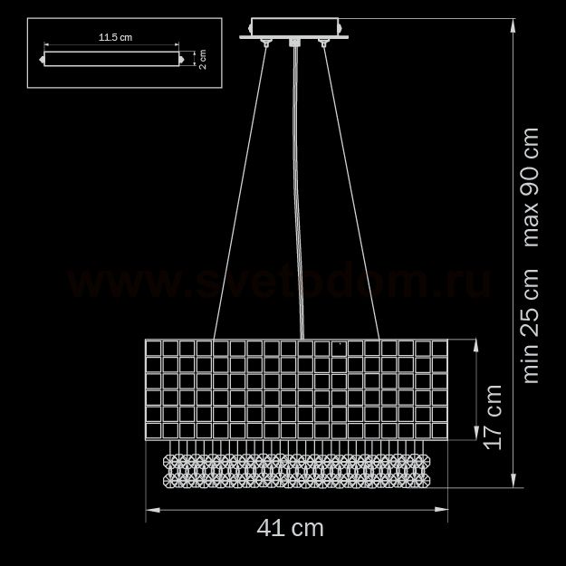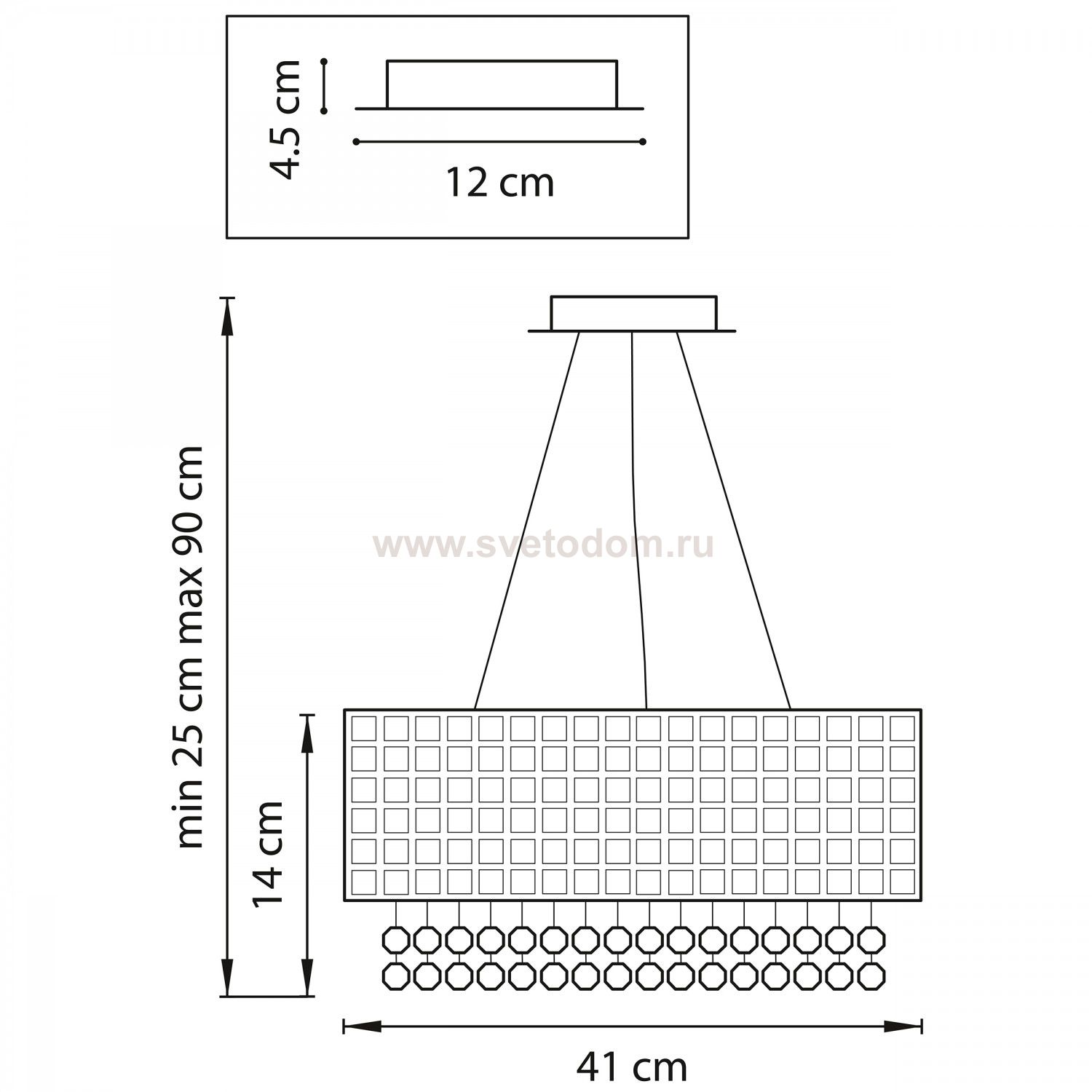 Высота min-max (см): 25-90; Ширина (см): 41; Вес (кг): 4,15; Кол-во ламп: 6хG9; Мощность max (W): 40; Цвет основания/цвет стекла или абажура: ХРОМ;