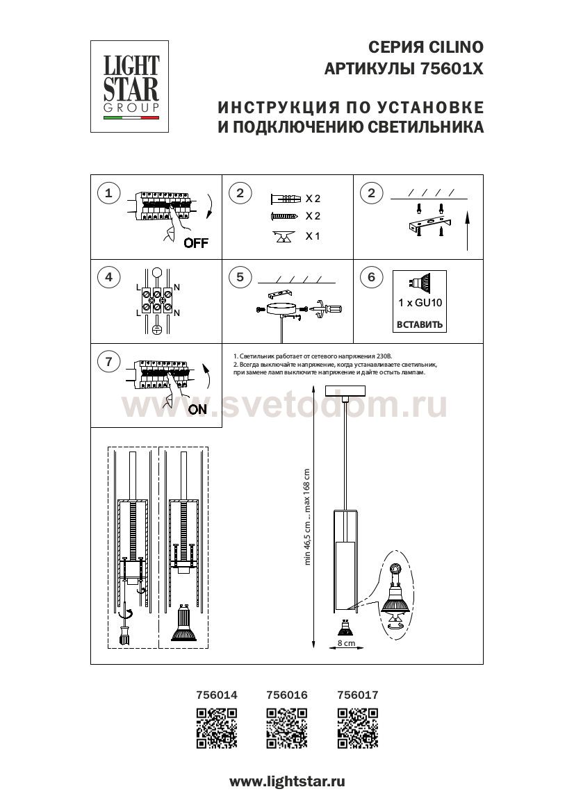 Подвес Cilino от Lightstar соединяет в себе блеск двух поверхностей - хромовой и стеклянной. Стеклянный плафон точно повторяет очертания хромового, помещенного внутрь него. Технологичность и четкая геометрия Cilino контрастируют с теплым светодиодным лучом. Его ясный свет рассеивает в пространстве белая акриловая пластина, встроенная в хромовый плафон. Высота min-max (см):46,5-168; Ширина (см): 8; Вес (кг): 1; Кол-во ламп: 1xGU10; Мощность max (W): 40; Цвет основания/цвет стекла или абажура: Chrome; Особенности: в комплекте идут лампы 940262