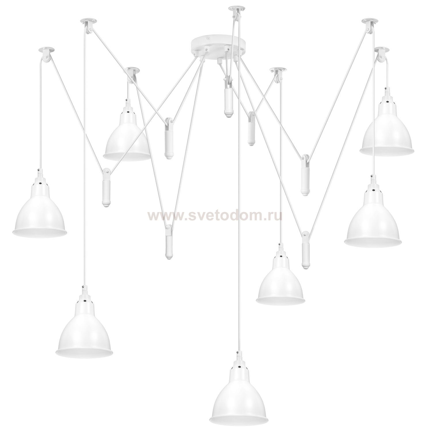 Высота min-max (см): 25-195; Ширина (см): ; Вес (кг): 5,6; Кол-во ламп: 7xE14; Мощность max (W): 40; Цвет основания/цвет стекла или абажура: Matt white;