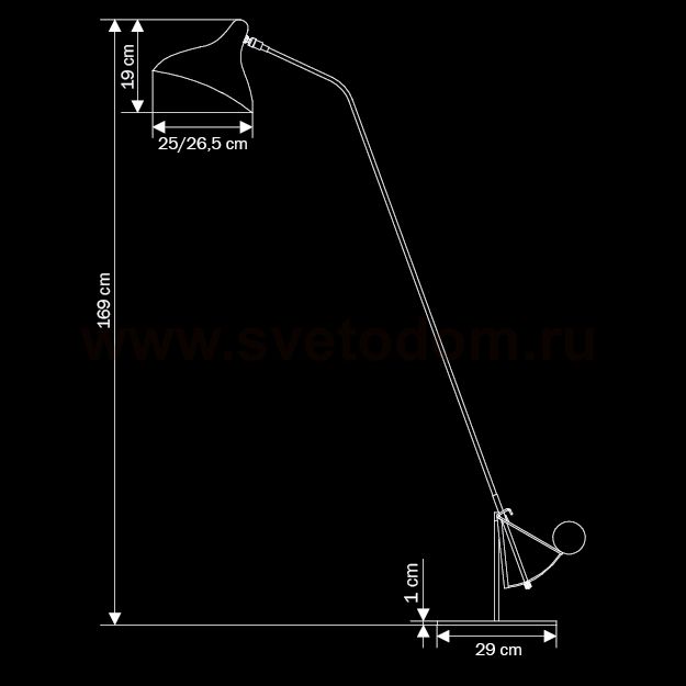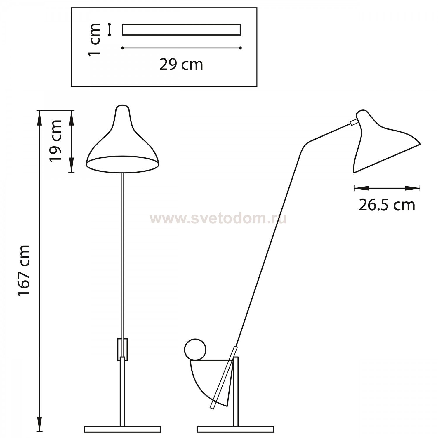 Высота min-max (см): 169; Ширина (см): 29; Вес (кг): 7,05; Кол-во ламп: 1; Мощность max (W): 40; Цвет основания/цвет стекла или абажура: Black;