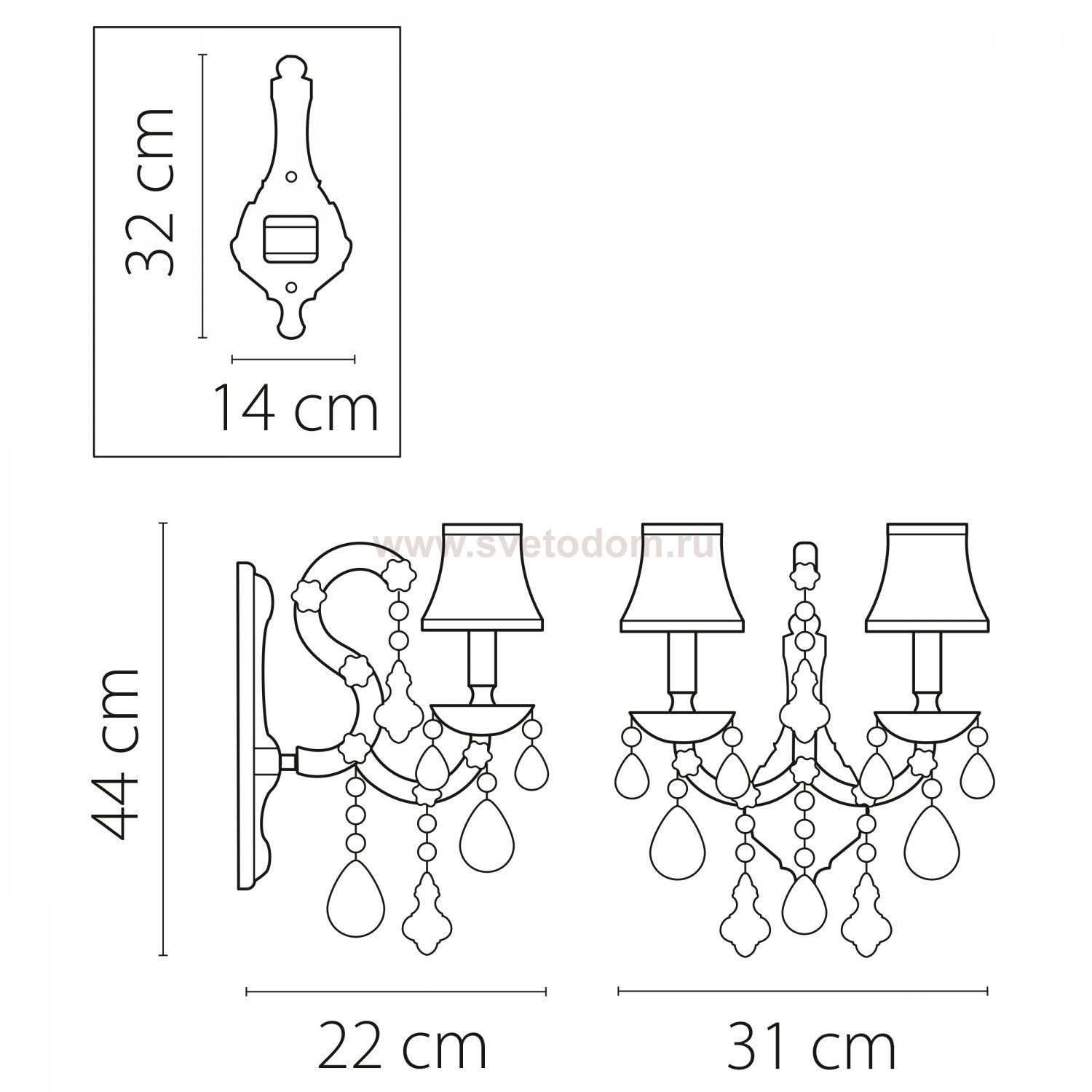 Высота min-max (см): 44; Ширина (см): 31; Глубина (см): 22; Вес (кг): 2,75; Кол-во ламп: 2xE14; Мощность max (W): 40; Цвет основания/цвет стекла или абажура: Chrome;