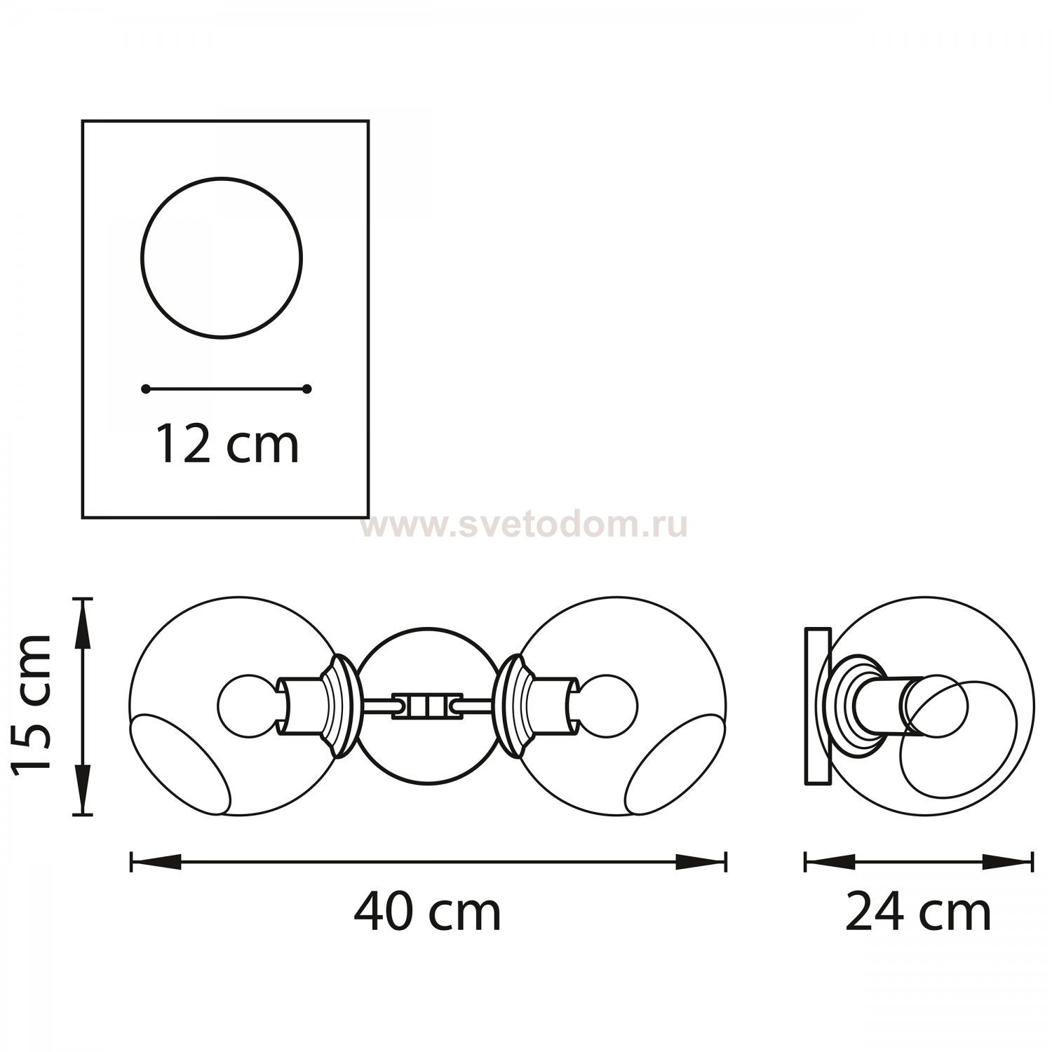 Высота min-max (см): 15; Ширина (см): 40; Глубина (см): 24; Вес (кг): 1; Кол-во ламп: 2xE27; Мощность max (W): 40; Цвет основания/цвет стекла или абажура: Gold/Black; Штрих-код