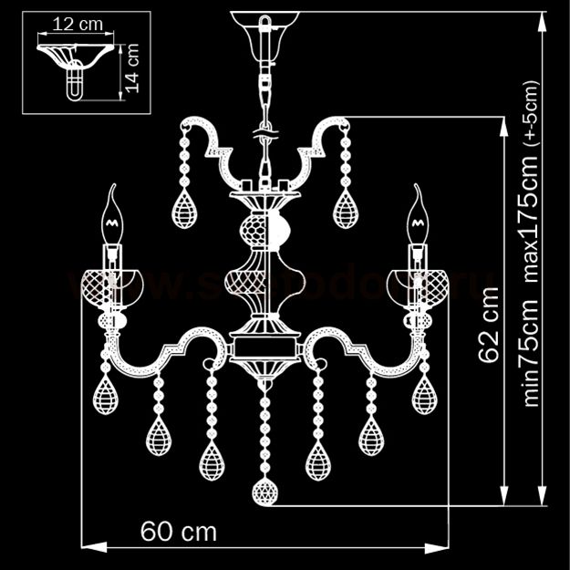 Максимальная потребляемая мощность лампы, которую можно использовать в люстре.