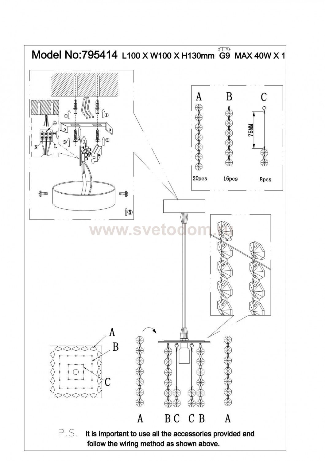 795414 Подвес CRISTALLO 1х40W G9 ХРОМ Комментарий