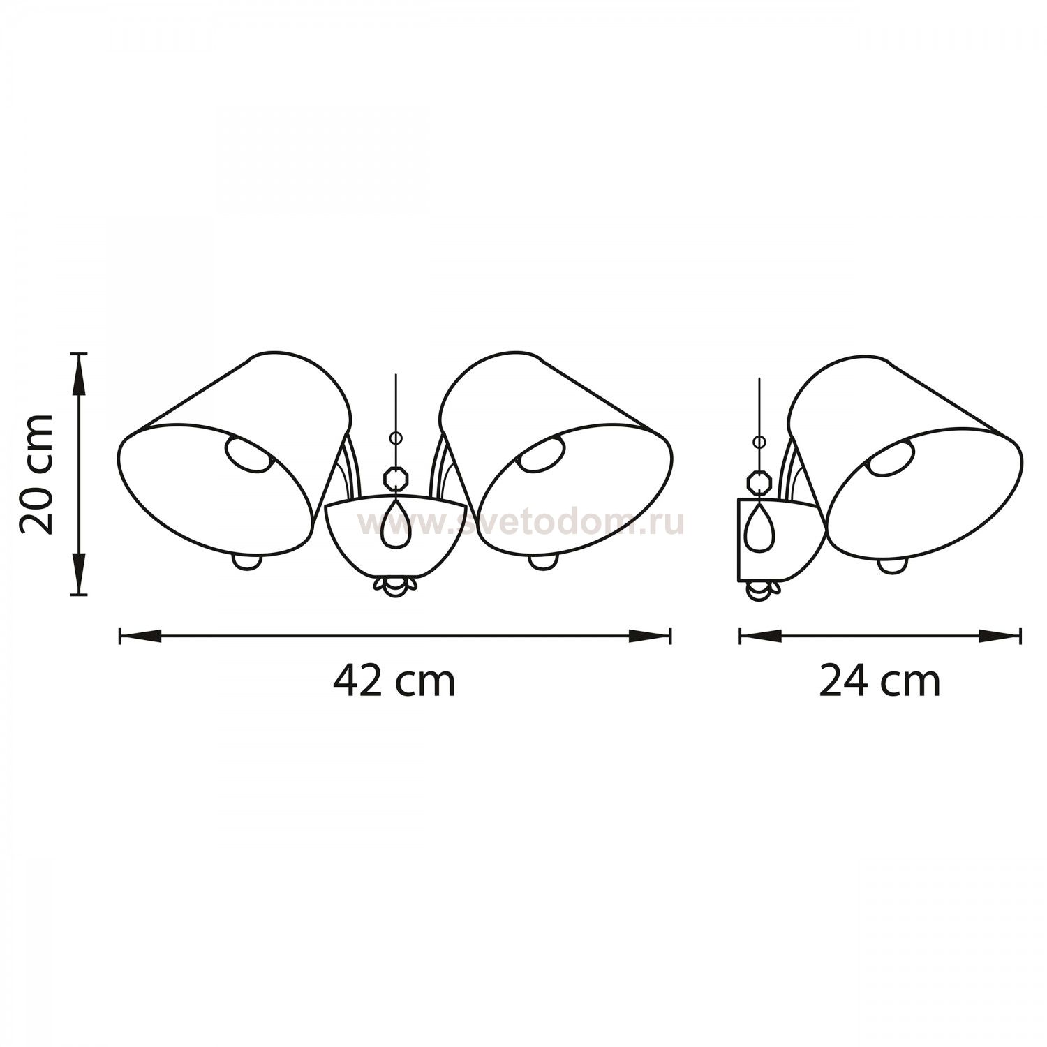 Высота min-max (см): 20; Ширина (см): 42; Глубина (см): 24; Вес (кг): 1; Кол-во ламп: 2xE27; Мощность max (W): 40; Цвет основания/цвет стекла или абажура: bronze;