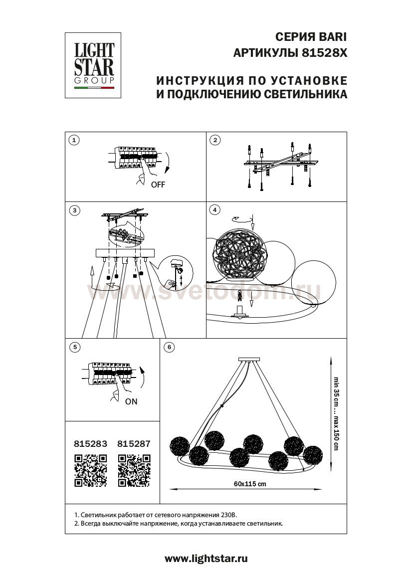 Высота min-max (см): 30-140; Ширина (см): 115*60; Вес (кг): 6,7; Кол-во ламп: 8хG9; Мощность max (W): 10 led; Цвет основания/цвет стекла или абажура: Gold/Matt Black; Особенности: в комплекте идут лампы 940452 Штрих-код