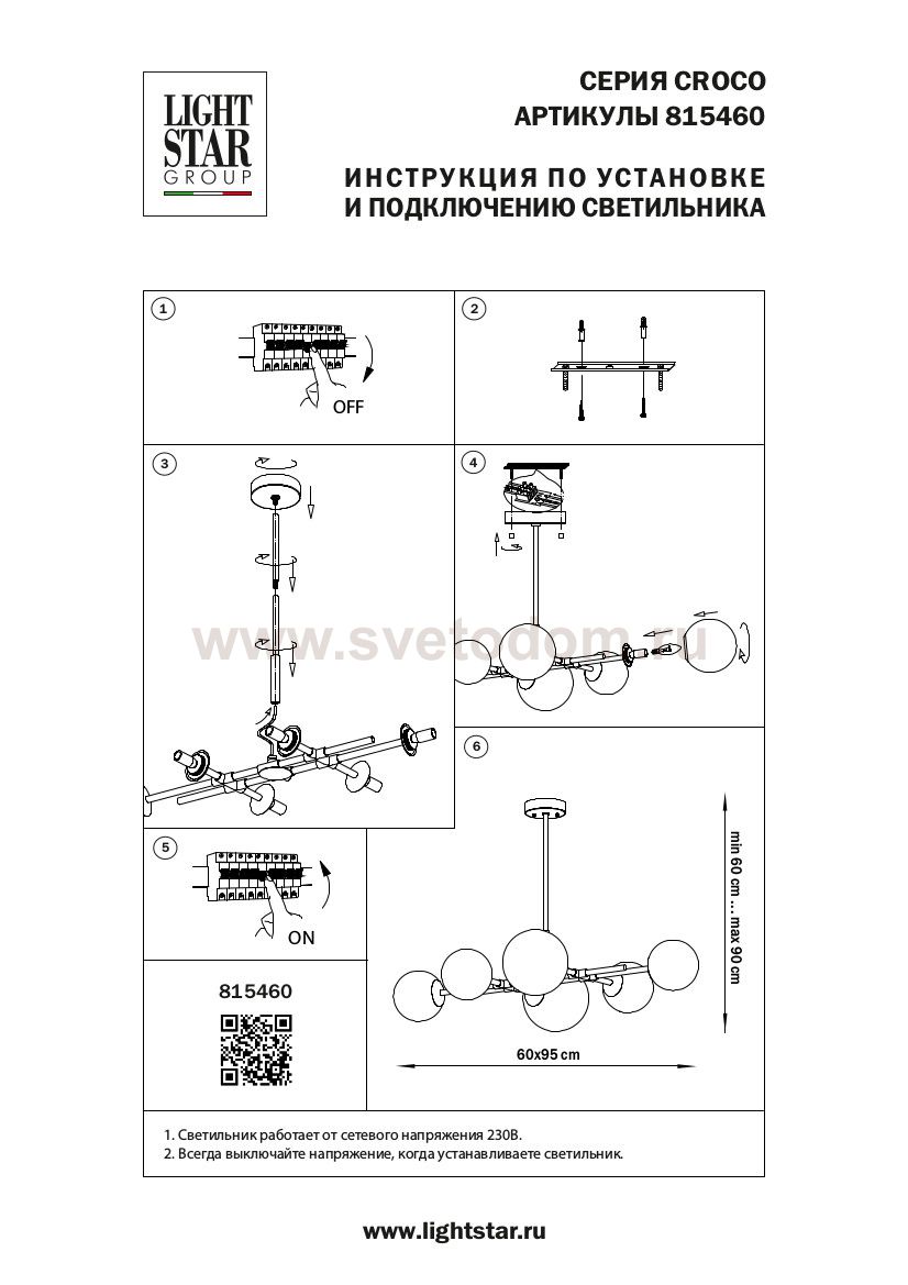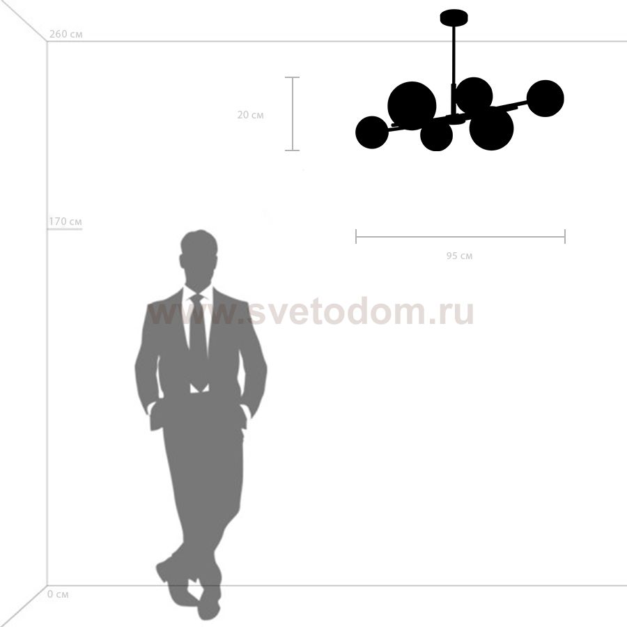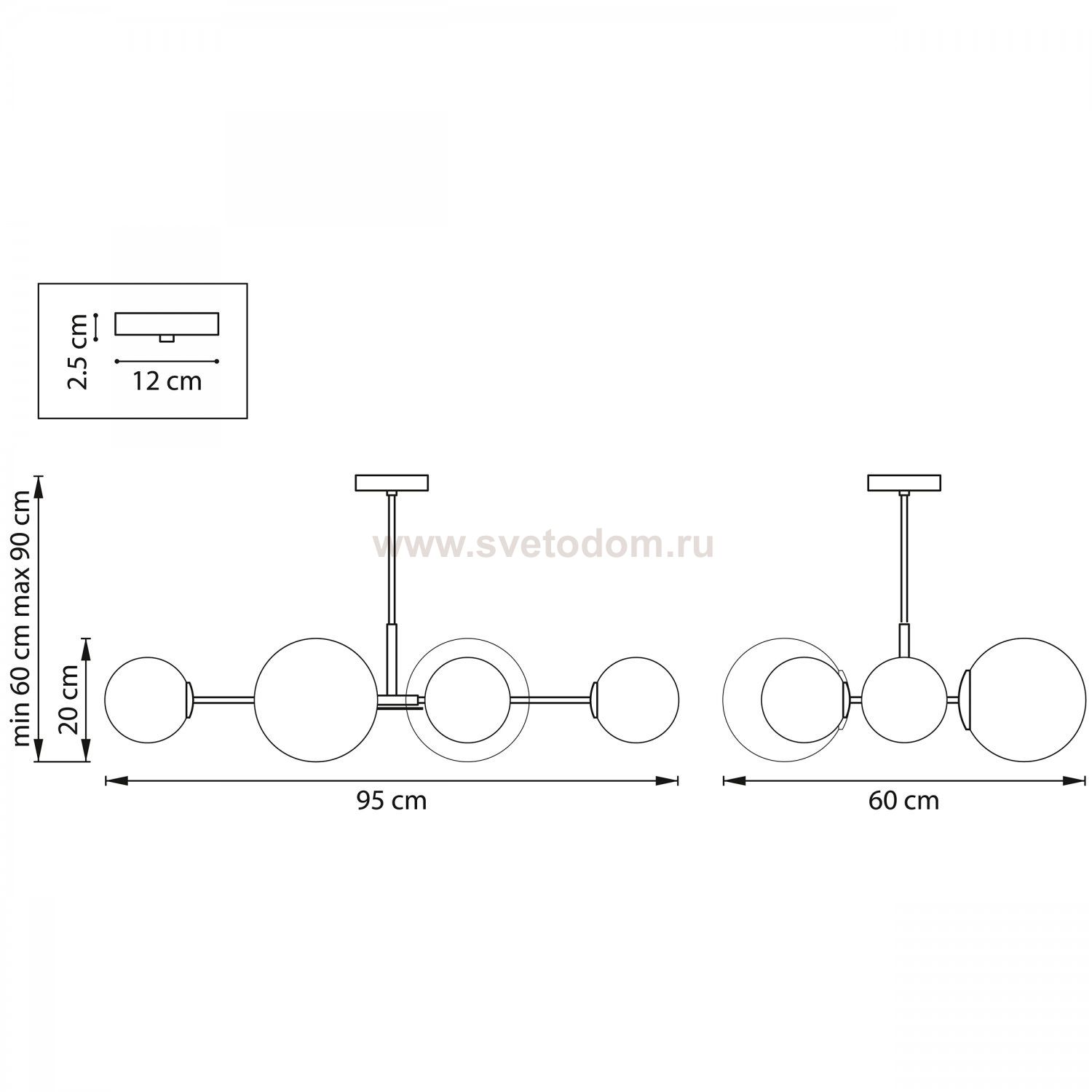 Высота min-max (см): 60-90; Ширина (см): 95*60; Вес (кг): 4,2; Кол-во ламп: 6хЕ14; Мощность max (W): 40; Цвет основания/цвет стекла или абажура: Matt Black/Gold; Штрих-код