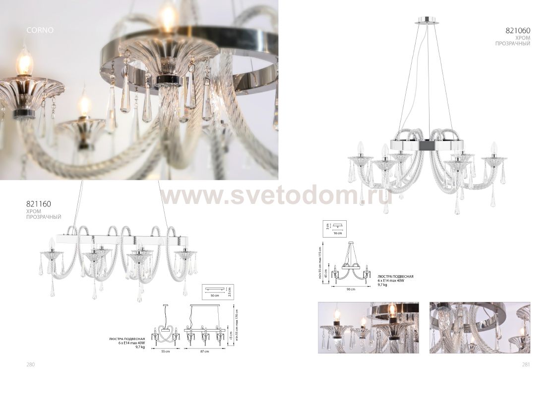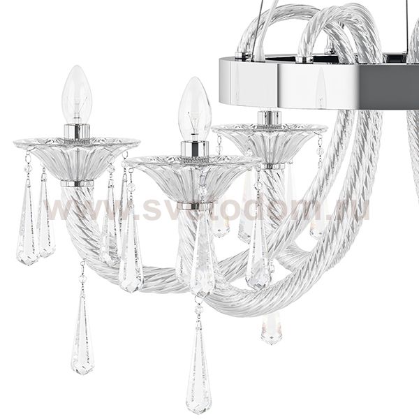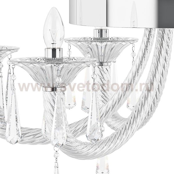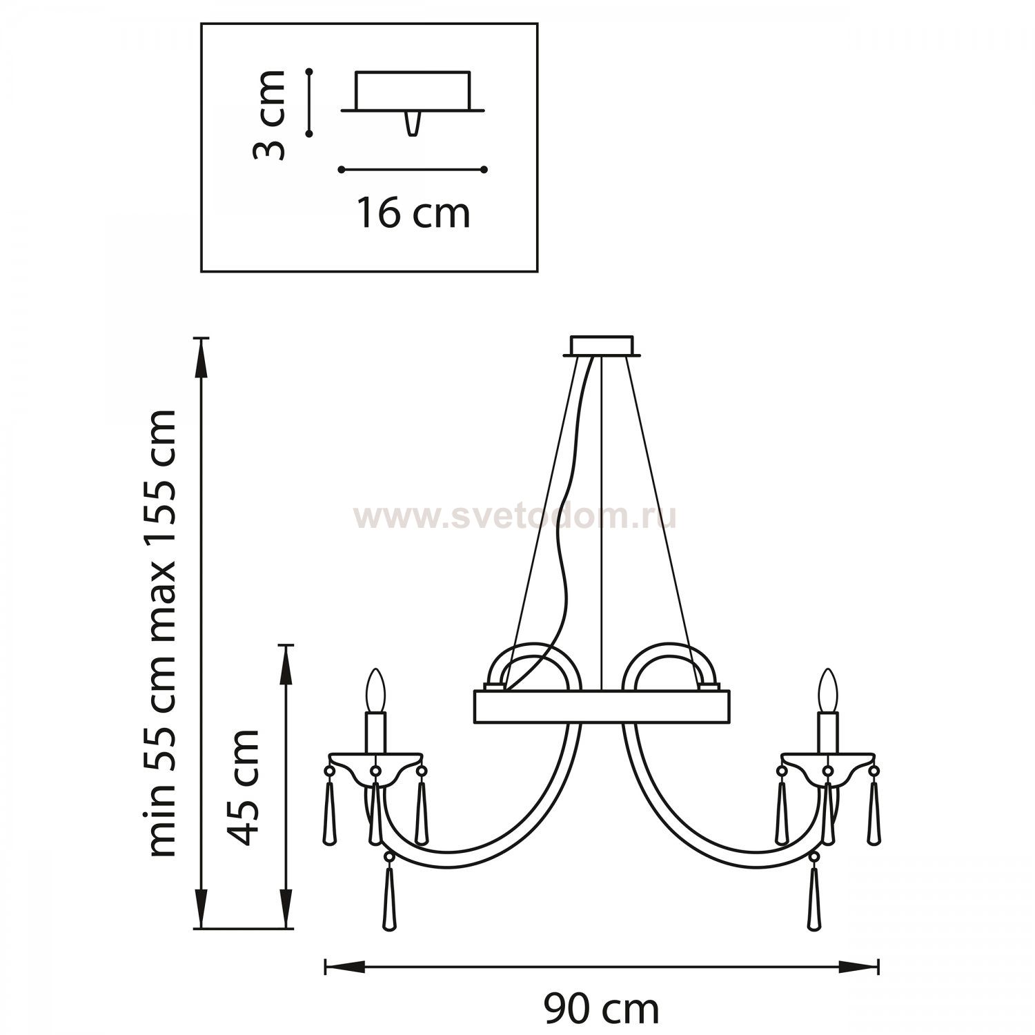 Высота min-max (см): 55-155; Ширина (см): 90; Вес (кг): 6,5; Кол-во ламп: 6xE14; Мощность max (W): 40; Цвет основания/цвет стекла или абажура: Chrome / Clear crystal;