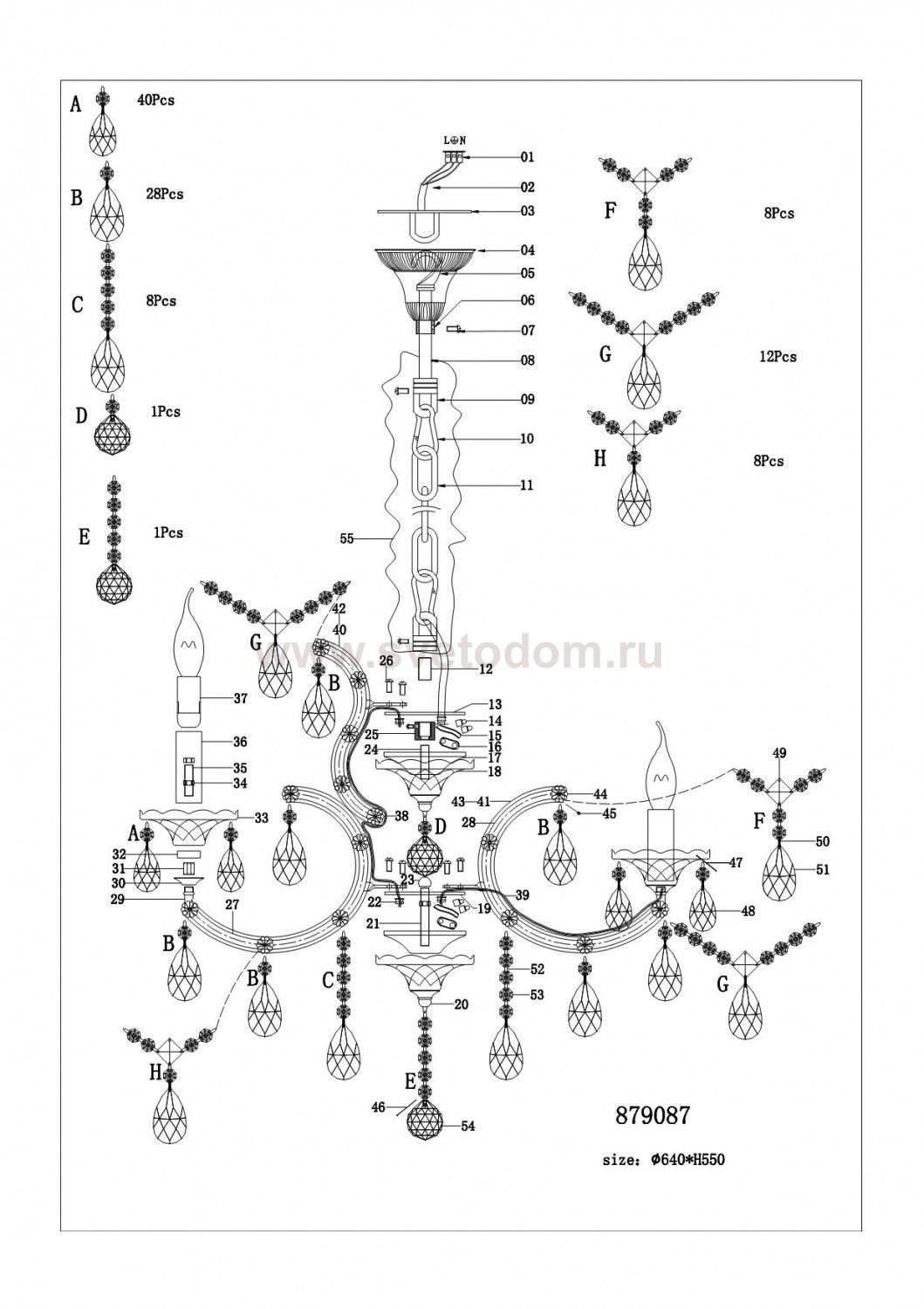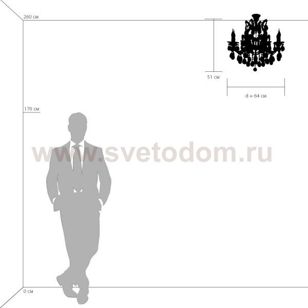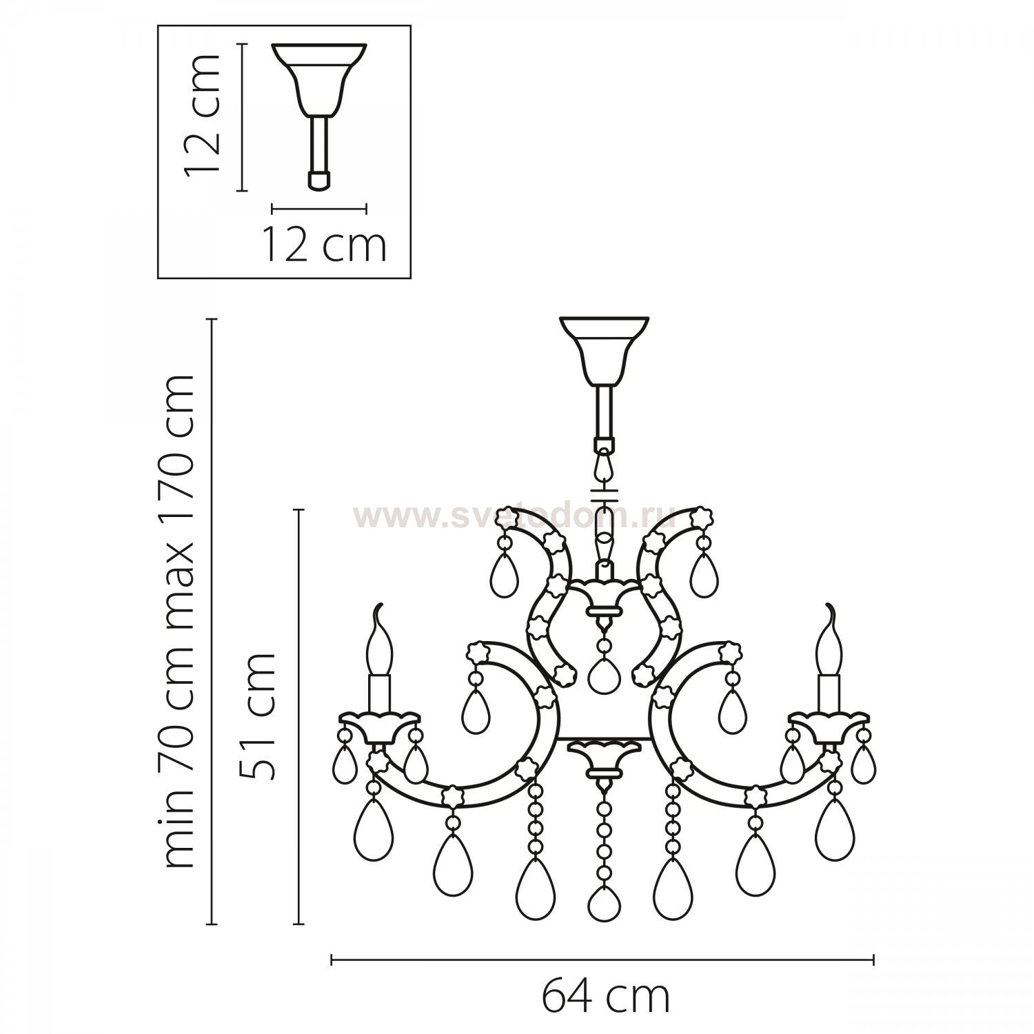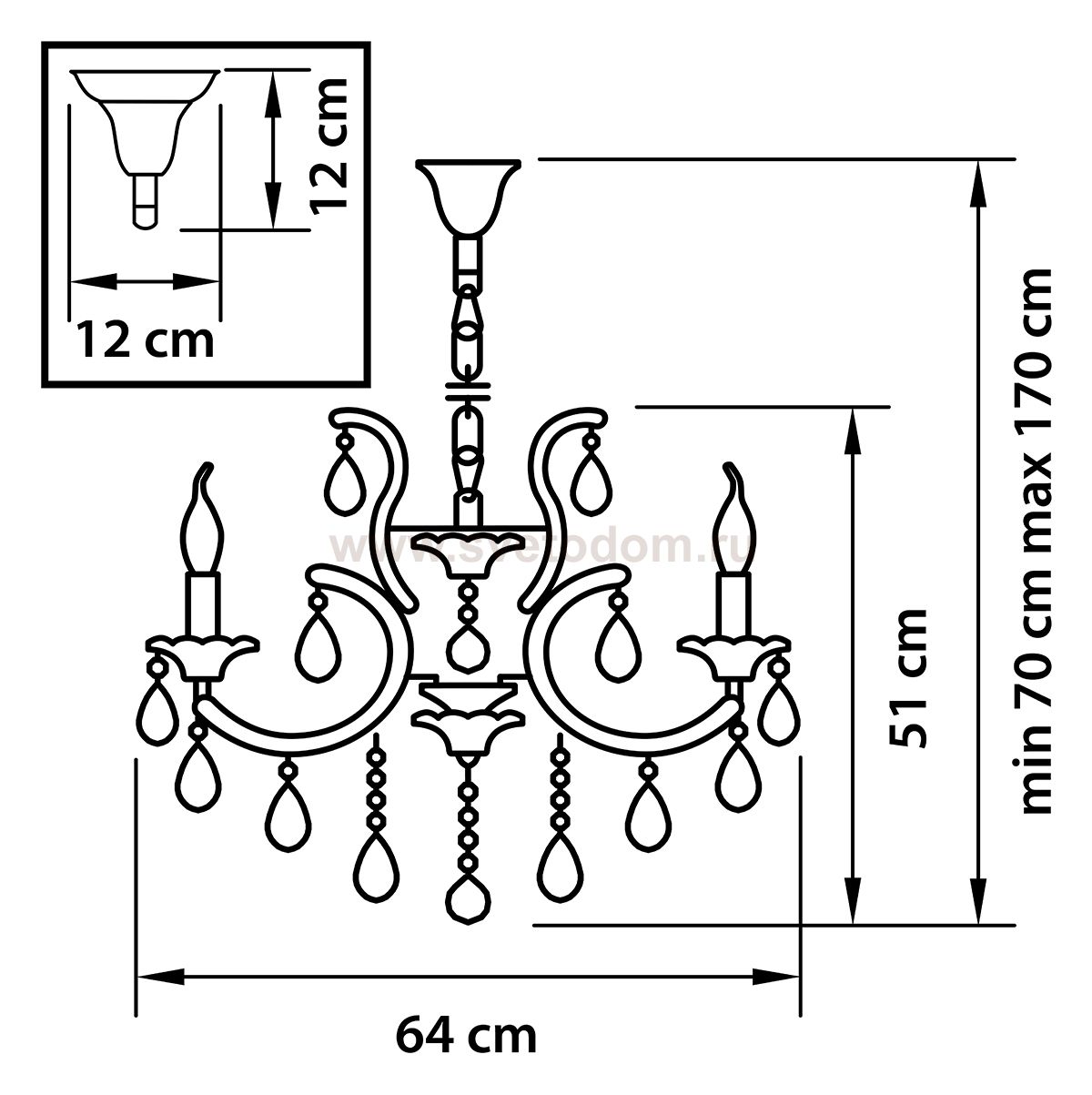 Высота min-max (см): 70-170; Ширина (см): 64; Вес (кг): 12,45; Кол-во ламп: 8xE14; Мощность max (W): 60; Цвет основания/цвет стекла или абажура: Black Chrome;