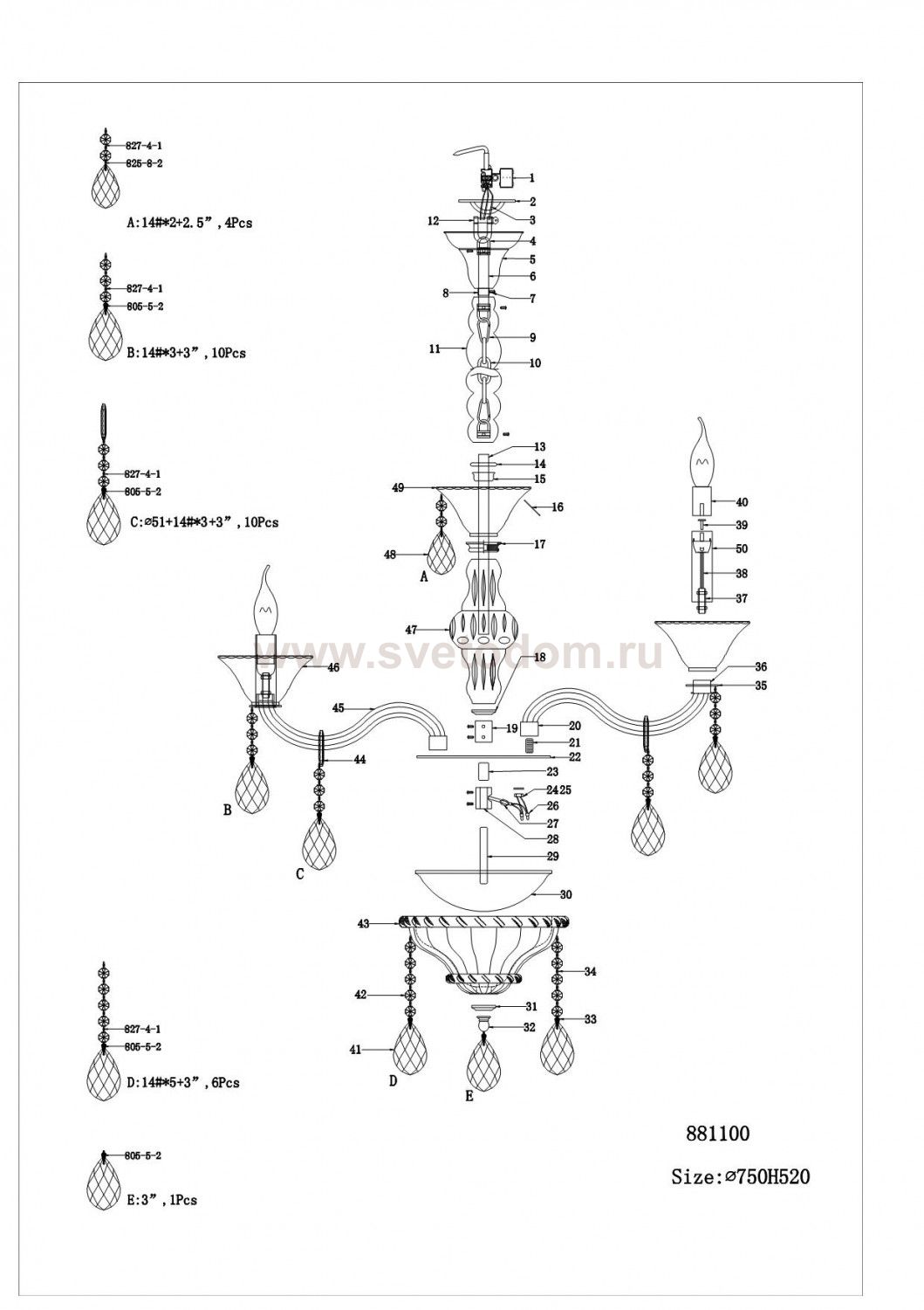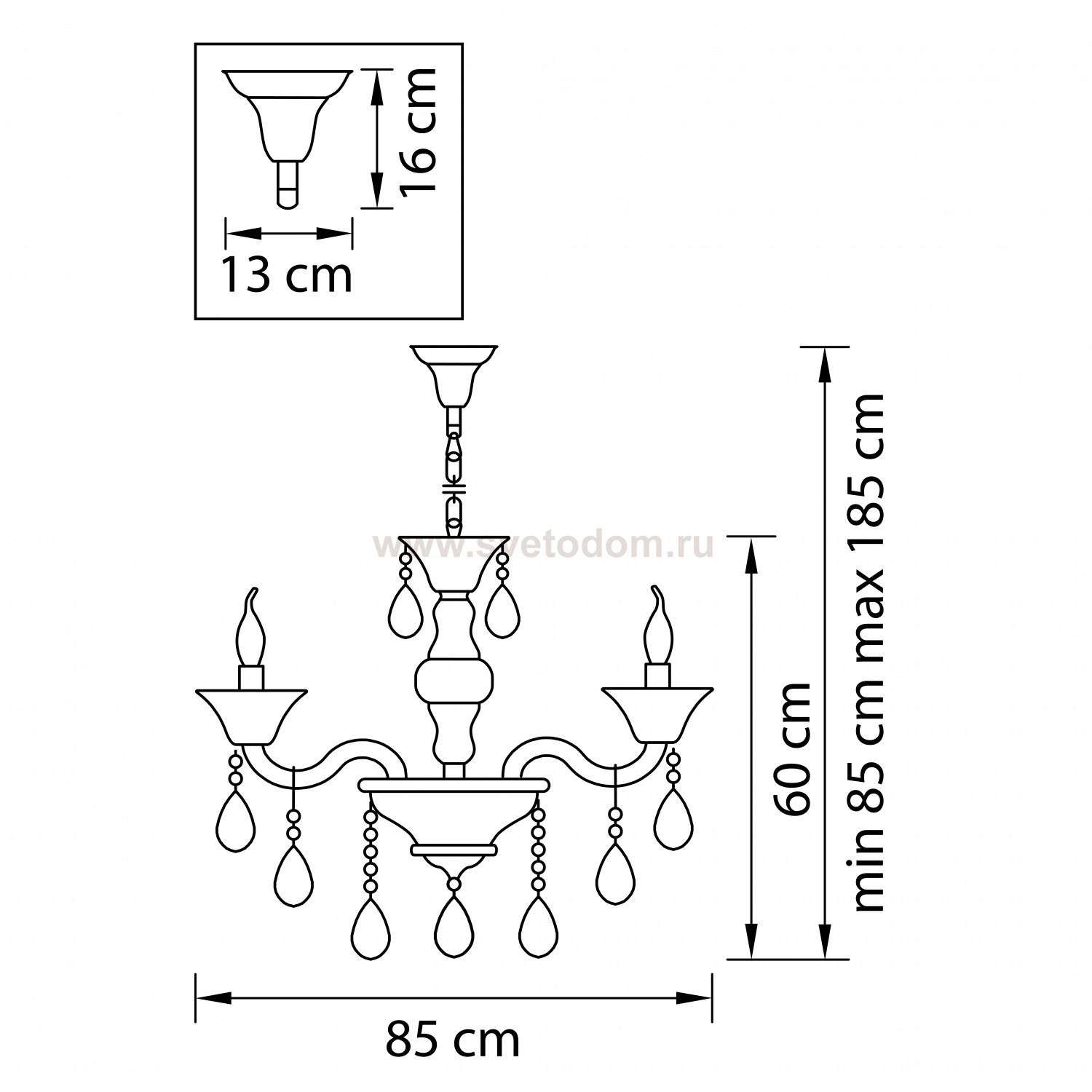 <Высота min-max (см): 85-185; Ширина (см): 85; Вес (кг): 12; Кол-во ламп: 10xE14; Мощность max (W): 60; Цвет основания/цвет стекла или абажура:Chrome/ Black