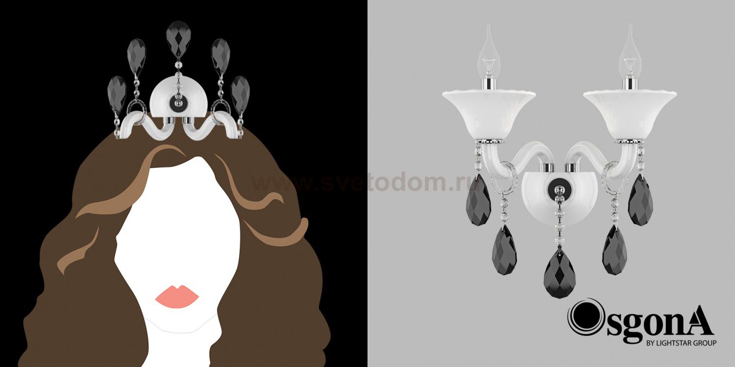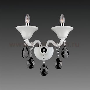 Бра Bianca – это игра контрастов. Белые, словно фарфоровые, рожки, чаши и основание сделаны из матового стекла. Крупные чаши удерживают яркие лампы, которые беспрепятственно разливают насыщенный свет. Бра украшено крупными черными подвесками из граненного хрусталя. Классическое сочетание черного и белого в светотехнике выглядит не менее прекрасно, чем изысканная корона Мисс Мира.