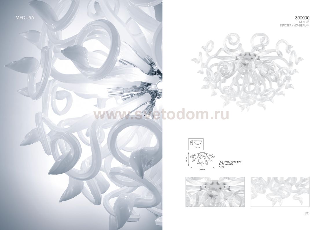 Необычная форма люстры Medusa определенно привлекает внимание и настраивает на положительный лад. Нейтральный белый цвет отлично подойдет в любой современный интерьер. Небольшие LED лампы не выбиваются из общей композиции, делая ее цельной и лаконичной. Стильная люстра Lightstar 890090 станет украшением любого дома. Эта модель от известного производителя не оставит равнодушным ценителей красивых и оригинальных предметов интерьера. Люстра Lightstar 890090 обеспечит равномерное распределение света по всей комнате. При выборе обратите внимание на характеристики, позволяющие приобрести наиболее подходящую модель. Купить понравившуюся люстру по доступной цене Вы можете в интернет-магазине «Светодом».