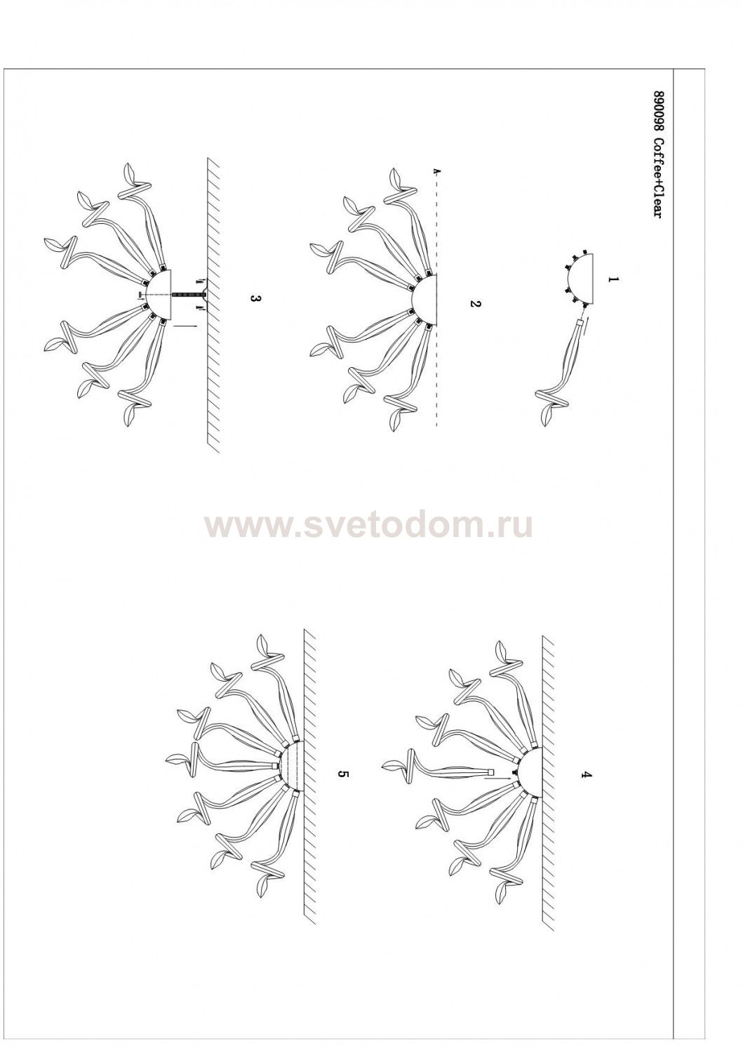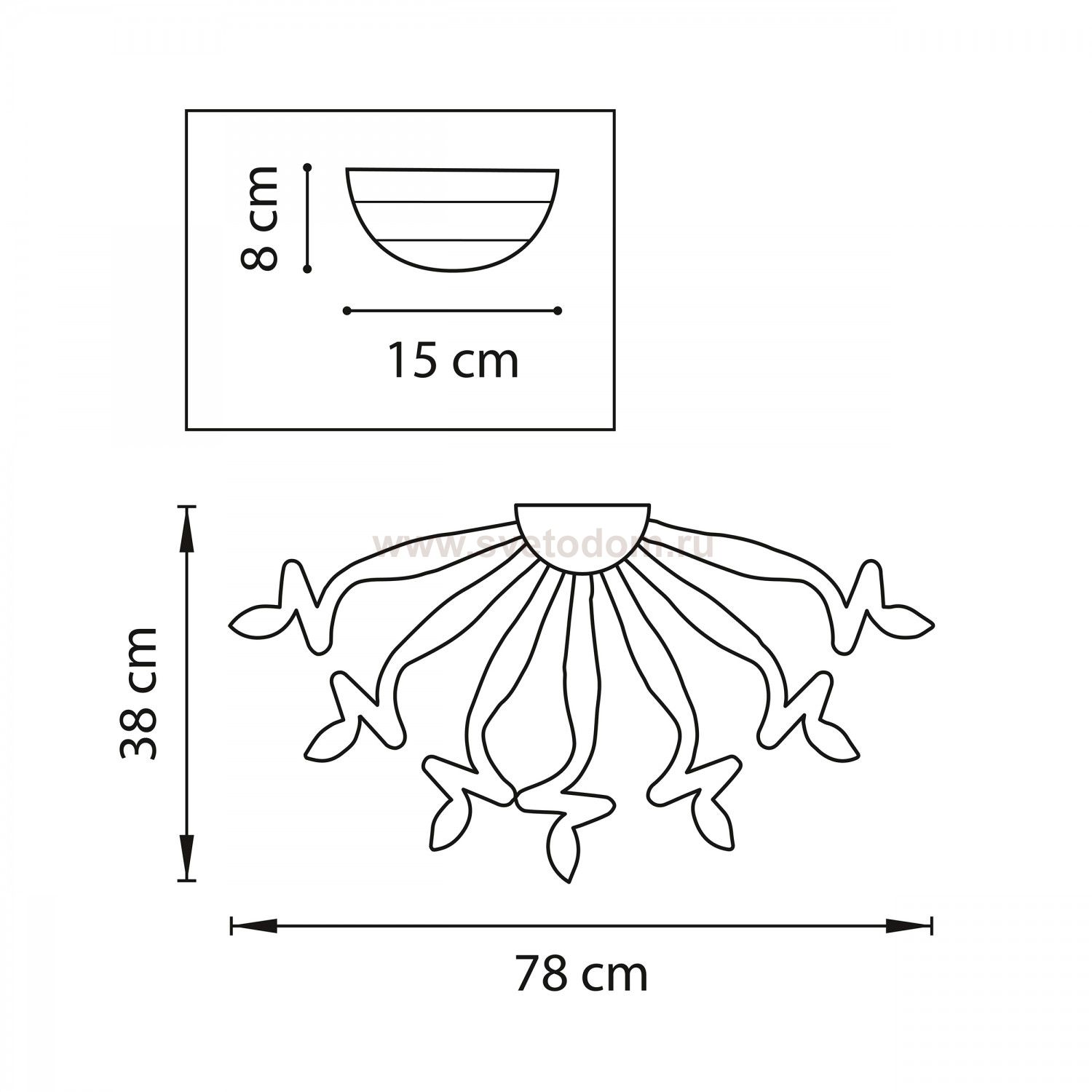 Высота min-max (см): 38; Ширина (см): 78; Вес (кг): 7,2; Кол-во ламп: 9хG9; Мощность max (W): 40; Цвет основания/цвет стекла или абажура: COFFEE+CLEAR;