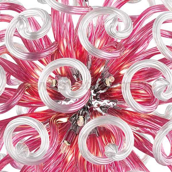 Высота min-max (см): 90-190; Ширина (см): 80; Вес (кг): 18; Кол-во ламп: 18xG9; Мощность max (W): 40; Цвет основания/цвет стекла или абажура: хром/розовый;