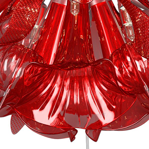 Высота min-max (см): 56; Ширина (см): 115; Вес (кг): 6,5; Кол-во ламп: 12хG9; Мощность max (W): LED 6; Цвет основания/цвет стекла или абажура: ХРОМ/КРАСНЫЙ; Особенности: в комплекте лампы 933404