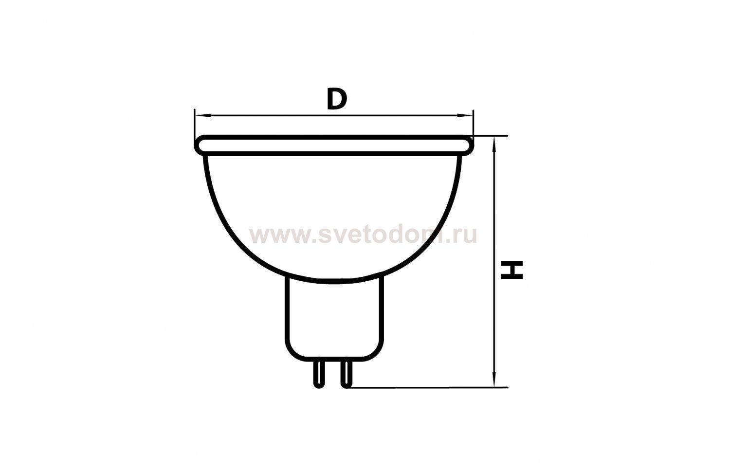 Тип: Светодиодная лампа; Напряжение (V): 220; Тип колбы: MR16 51мм; Цоколь: G5.3; Мощность (W): 4,5; Эквивалентная мощность лампы накаливания (W): 45; Световой поток: 195LM; Угол рассеивания (G): 120; Особенности (Опции): матовое стекло; Цветопередача: 85; Цветовая температура (К): 3000; Срок службы (Ч): 20000; Диммируемость: нет; Срок службы