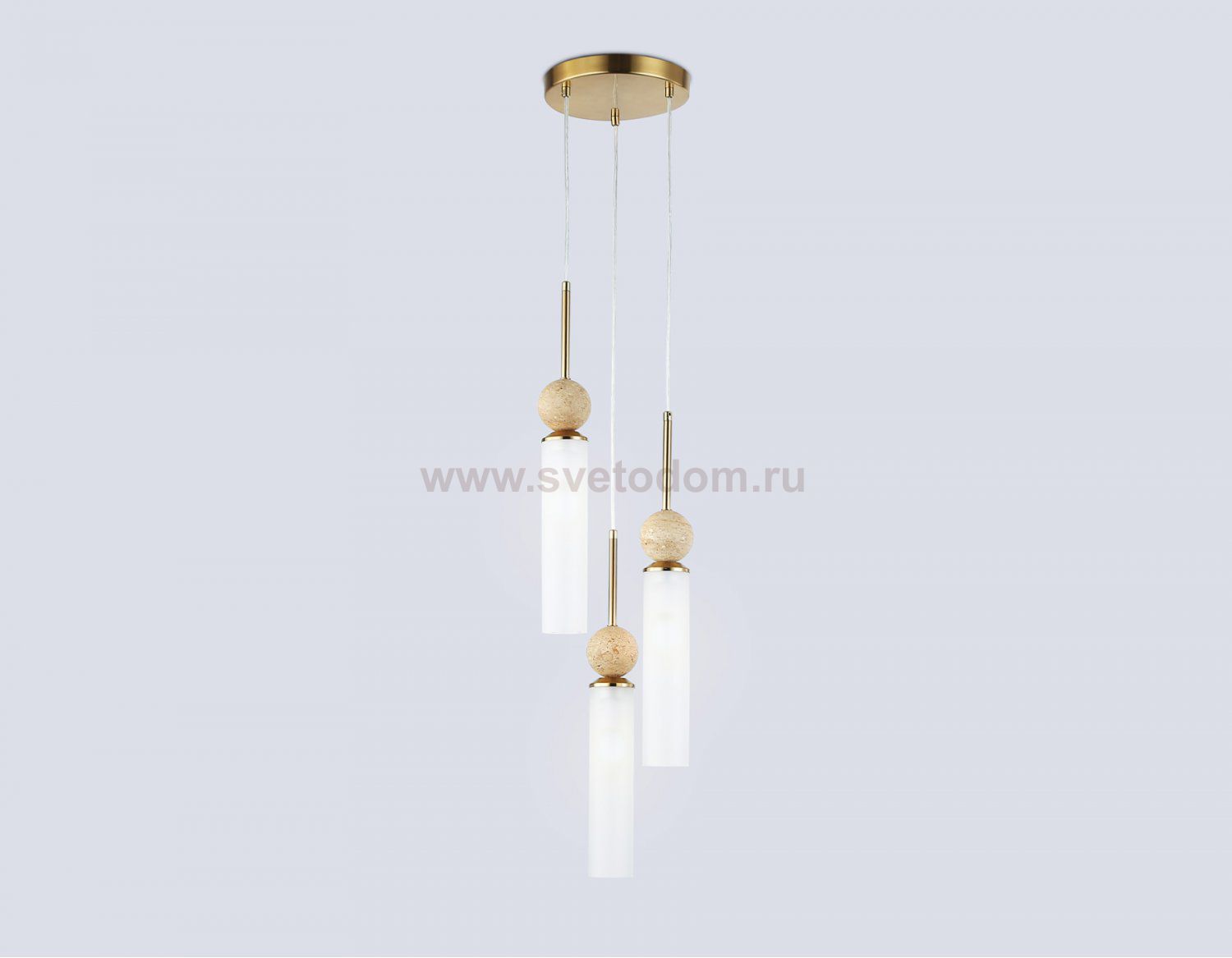 Подвесной светильник из коллекции HIGH LIGHT. Модель LH53257 представлена в современном стиле модерн. Светильник выполнен из металла в цвете латунь со стеклнным белым матовым плафоном, а также украшен мрамором песочного цвета. Имеет три цоколя Е14. Светильник будет прекрасным дополнением в любом помещении.
