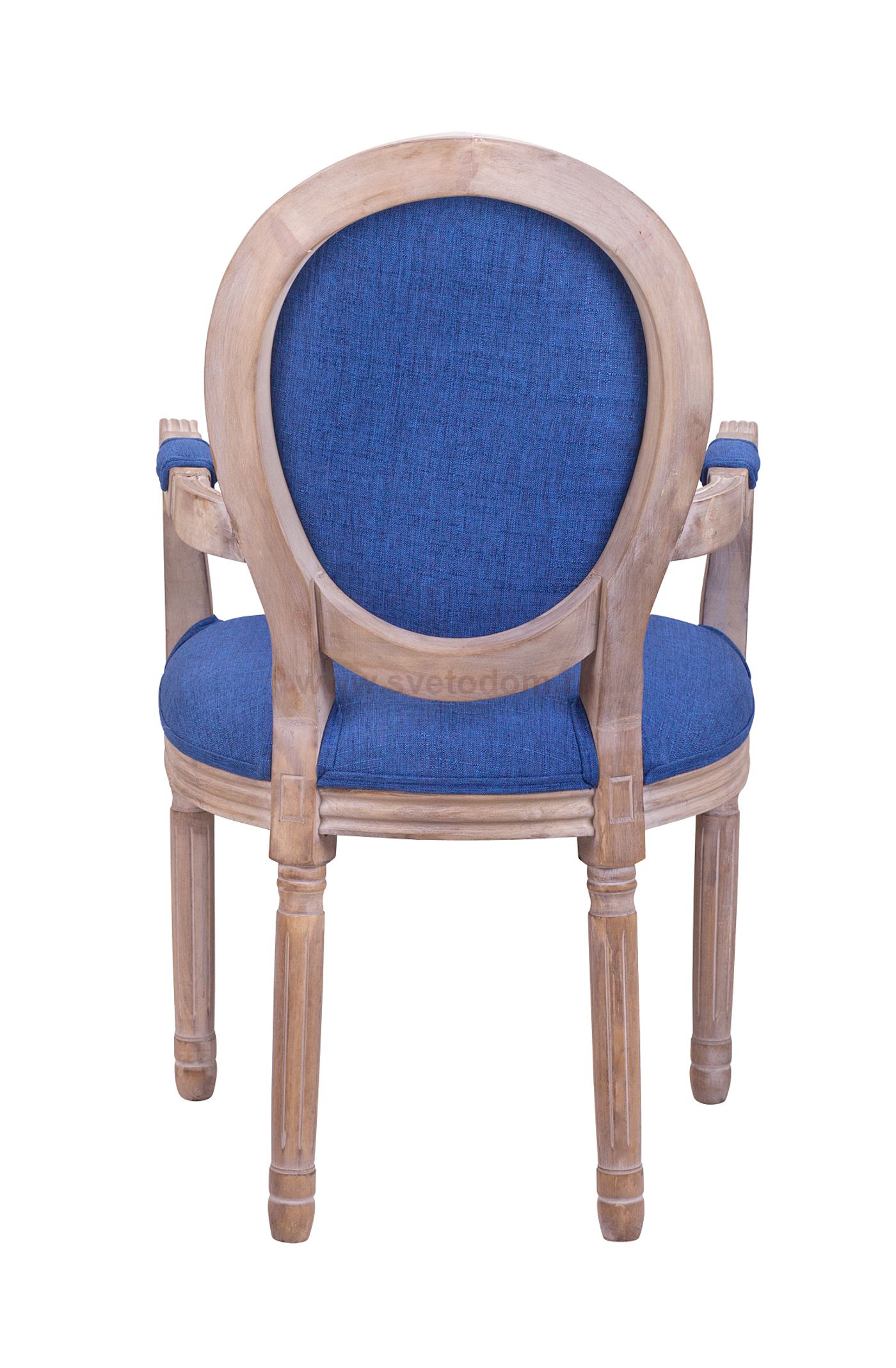 Стул Volker arm original blue с основанием из натуральной древесины. Округлая спинка в деревянном обрамлении напоминает медальон, широкое сиденье обеспечивает комфортное расположение тела при работе или отдыхе. Ножки украшены узорной резьбой, для обивки использован велюр, способный органично сочетаться с нейтральными и яркими расцветками окружающей обстановки.