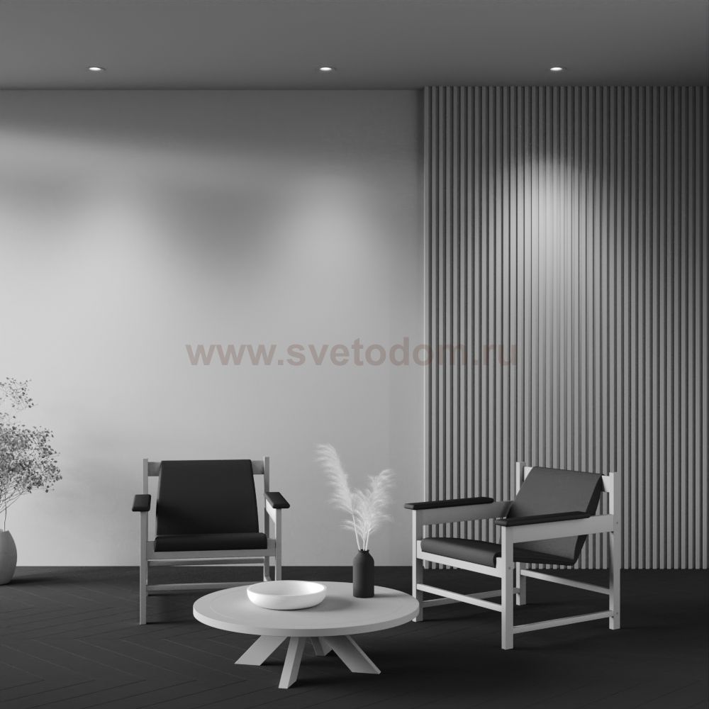 Корпус из алюминиевого сплава, покрытый акрилом. Сияющий эффект при свечении. Цвет – нежно-белый. Лампа GU10. Отсутствие стопорного кольца.