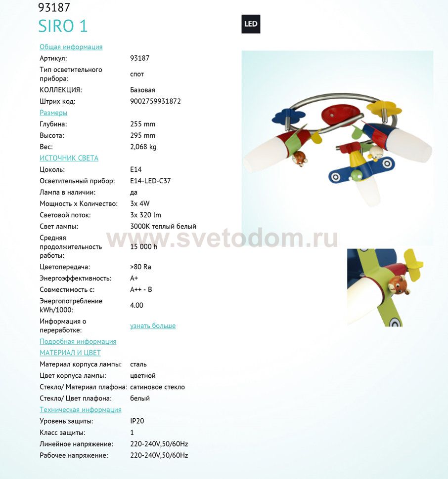 Детский светильник Eglo 93187 SIRO 1 сделает Ваше помещение современным, стильным и запоминающимся! Наиболее эстетически привлекательно и функционально модель будет смотреться как в зале, гостевой, холле или другой комнате. А в совокупности с настенными или напольными светильниками из этой же коллекции, сделает интерьер по-дизайнерски законченным и профессиональным.