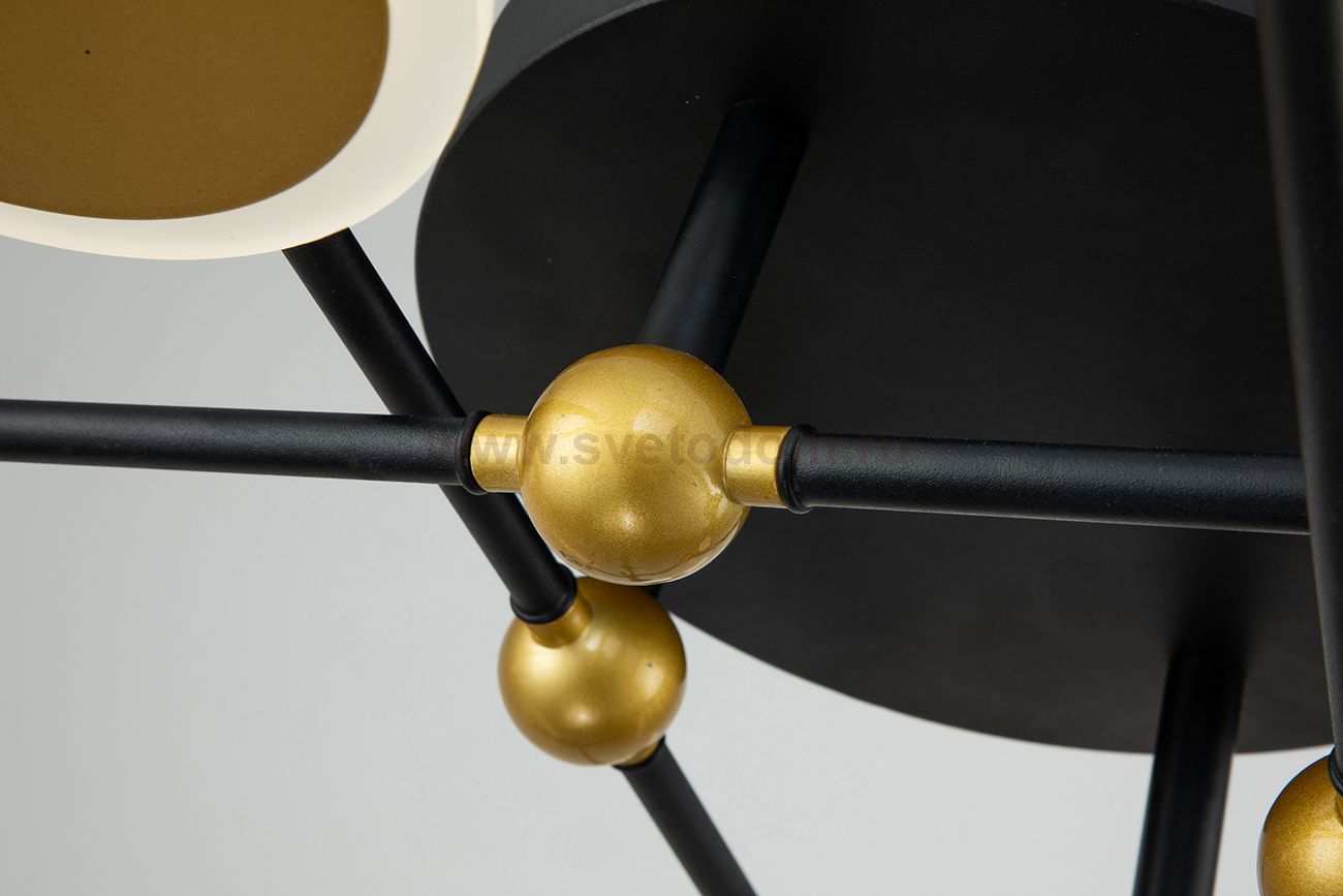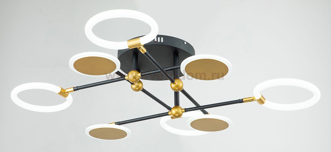 Светодиодный светильник 63Вт, 3480Лм, 3000К-6000К,Ra>80, Радио 2.4G, плавная регулировка мощности, изменение цветовой температуры, ночник, металл/акрил, чёрный/золото