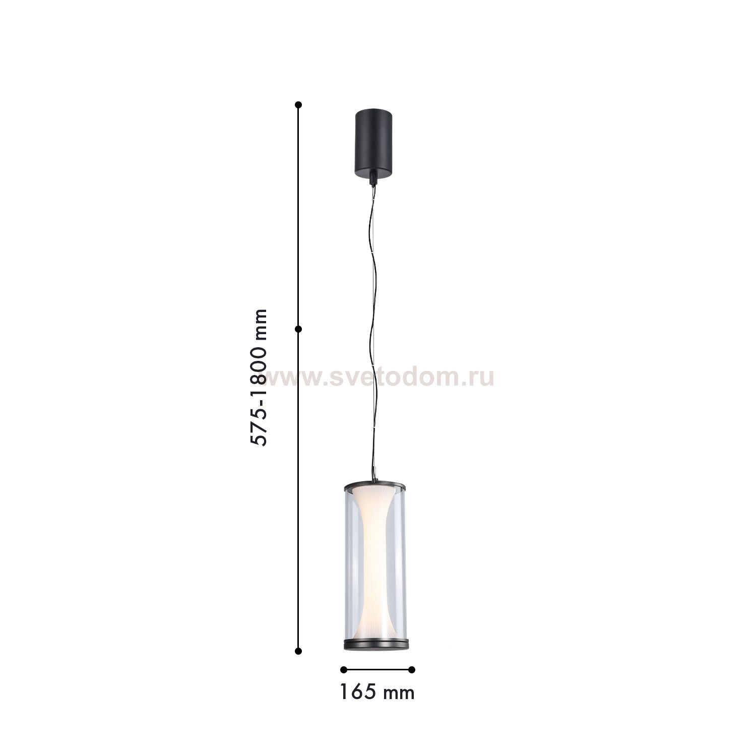 Подвес с двойным плафоном в виде стеклянного цилиндра, внутренний рифленый белый плафон, с расположенной в нем LED-лентой, элегантно обрамлен снаружи Серия
