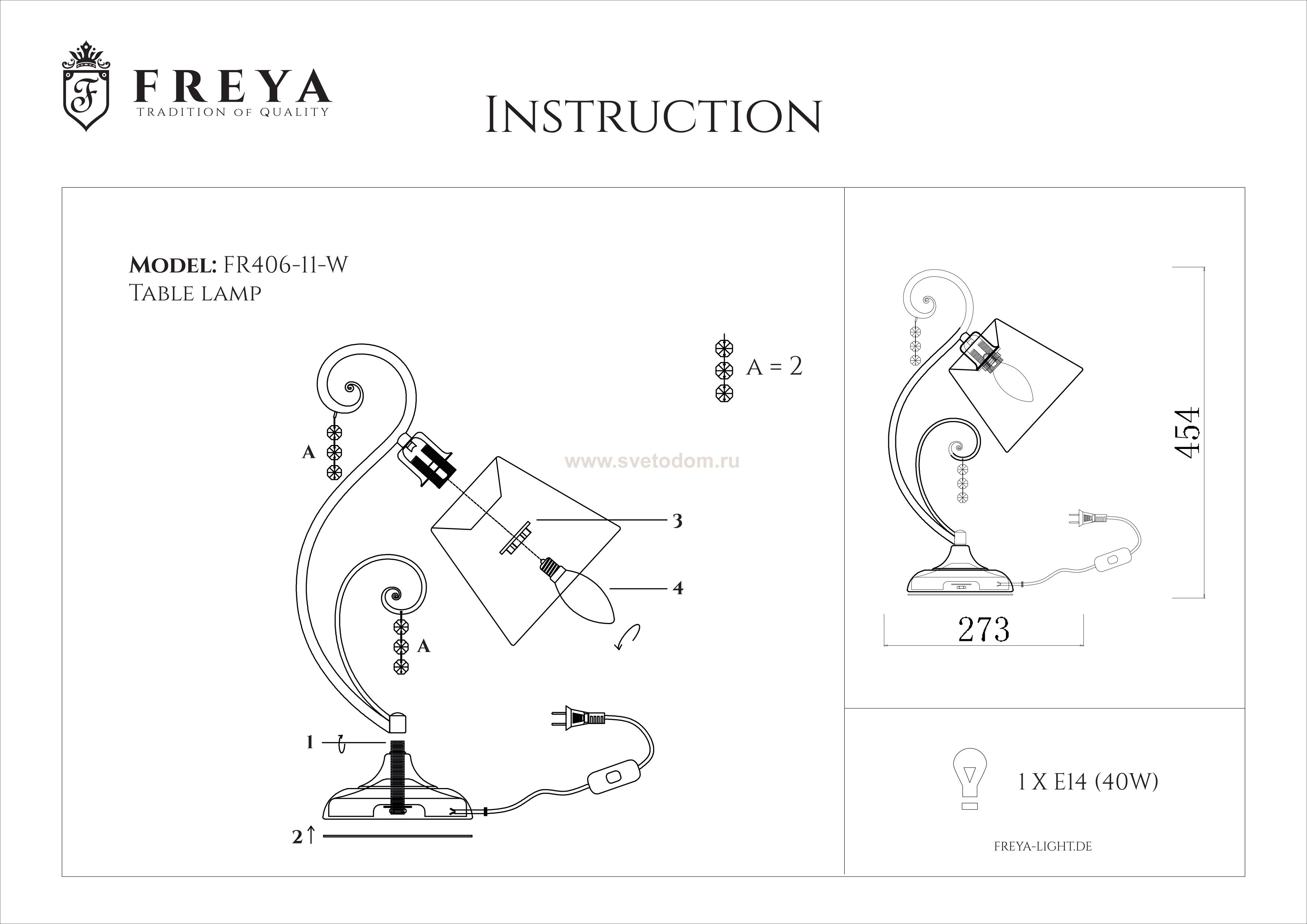 Настольная лампа – это не просто источник дополнительного освещения, но и оригинальный элемент декора. Его можно установить в спальне, гостиной, кабинете и других комнатах. Интернет-магазин «Светодом» предлагает настольные лампы разных стилей по доступным ценам. Благодаря большому ассортименту Вы обязательно найдете в нашем каталоге именно ту модель, которую искали. Настольная лампа Freya FR406-11-W – прекрасный вариант для завершения интерьера. Ее можно включить одновременно с люстрой для более яркого освещения или без нее для создания уютной атмосферы, настраивающей на отдых. Купить настольную лампу Freya FR406-11-W Вы можете с помощью виртуальной «Корзины» или по контактным номерам, указанным на сайте.