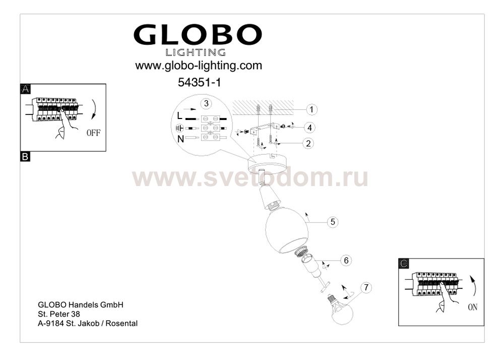 Светильники-споты – это оригинальные изделия с современным дизайном. Они позволяют не ограничивать свою фантазию при выборе освещения для интерьера. Такие модели обеспечивают достаточно качественный свет. Благодаря компактным размерам Вы можете использовать несколько спотов для одного помещения. Интернет-магазин «Светодом» предлагает необычный светильник-спот Globo 54351-1 по привлекательной цене. Эта модель станет отличным дополнением к люстре, выполненной в том же стиле. Перед оформлением заказа изучите характеристики изделия. Купить светильник-спот Globo 54351-1 в нашем онлайн-магазине Вы можете либо с помощью формы на сайте, либо по указанным выше телефонам. Обратите внимание, что у нас склады не только в Москве и Екатеринбурге, но и других городах России.