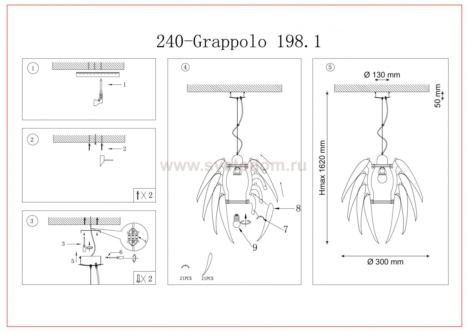 Максимальная потребляемая мощность лампы, которую можно использовать в люстре.