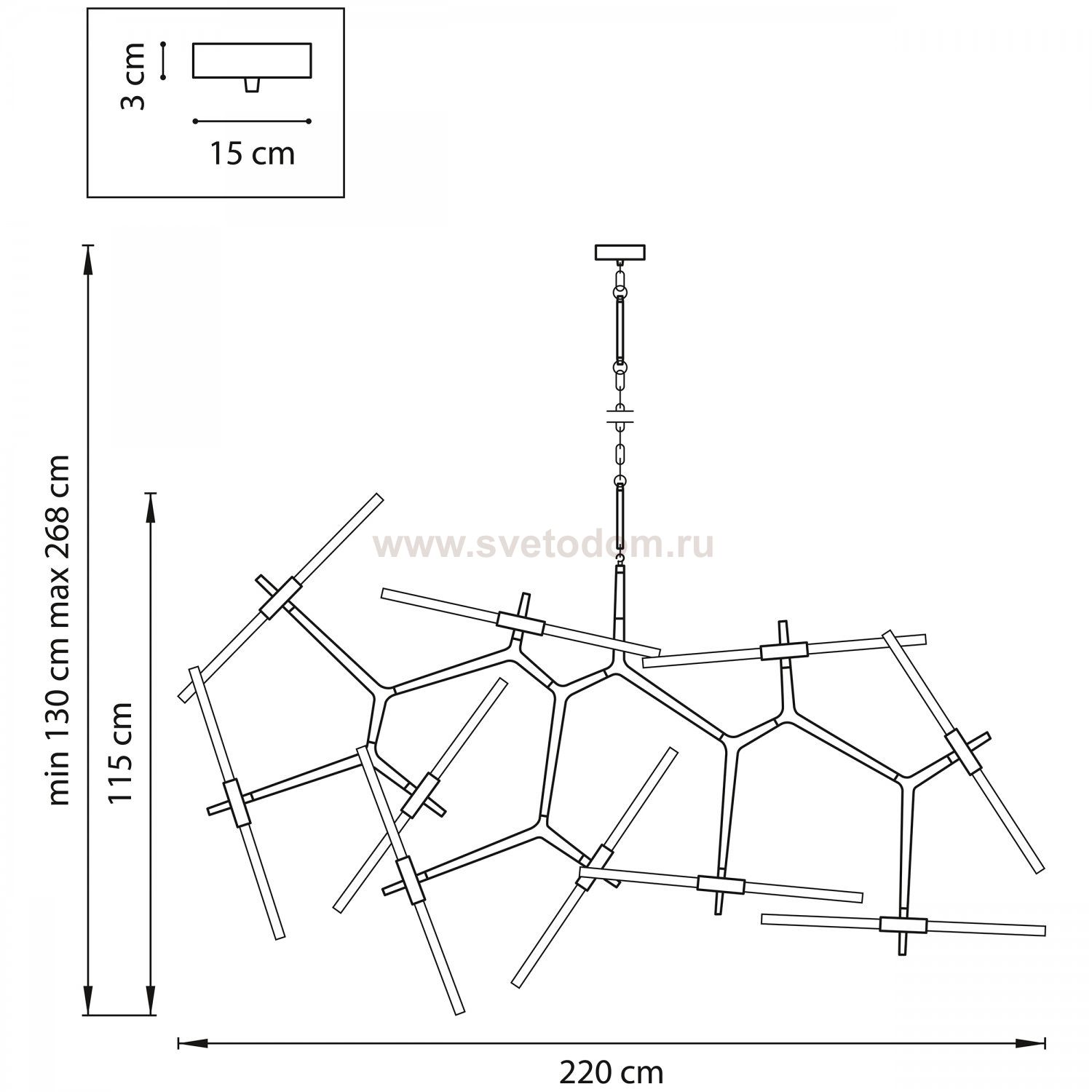 Высота min-max (см): ; Ширина (см): ; Вес (кг): ; Кол-во ламп: 20xG9; Мощность max (W): 40; Цвет основания/цвет стекла или абажура: Matt Black;
